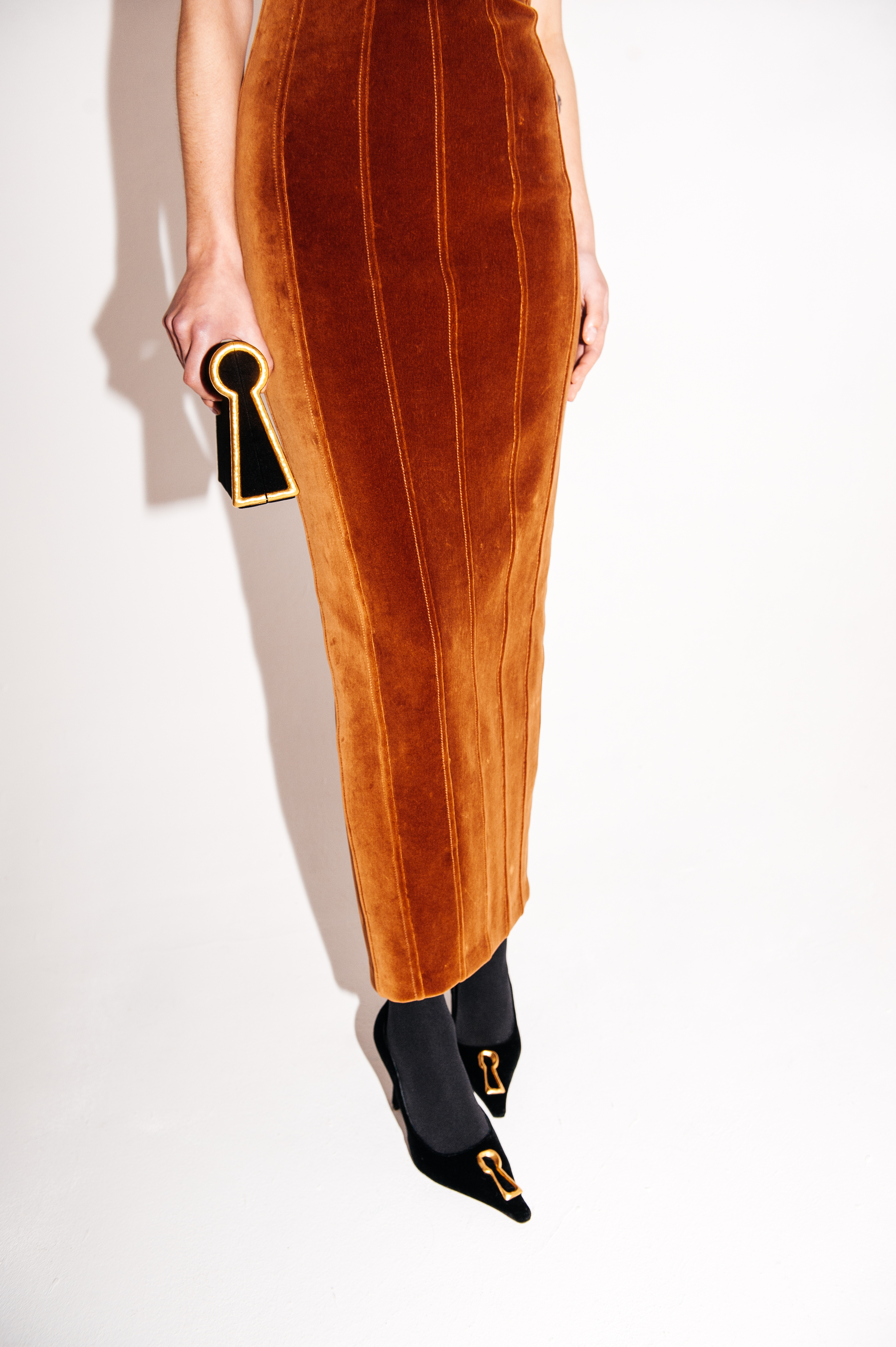 From ankle boots to stilettos, these models, some of which have already been seen on the catwalk and part of Schiaparelli's grammar for several seasons, feature the Maison's emblematic codes such as trompe-l'oeil gold toes, the keyhole, the signature Shocking! pink lining and the Measuring tape detail, in shapes both comfortable and sophisticated.