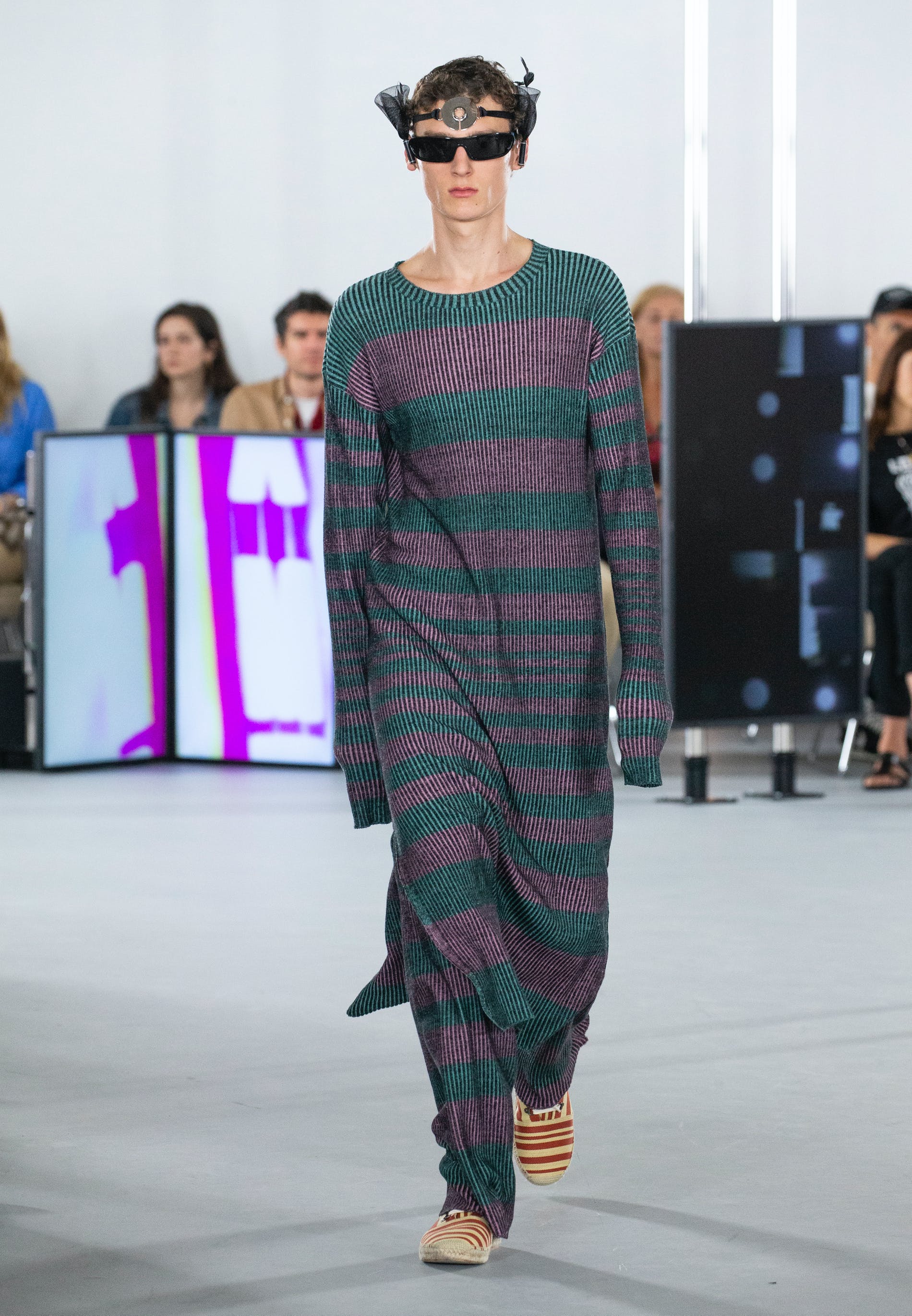The collection invokes otherworldly perspectives of the day-to-day through a dream-like filter - populated with airy knits and tanks in chevron or vertical stripes.