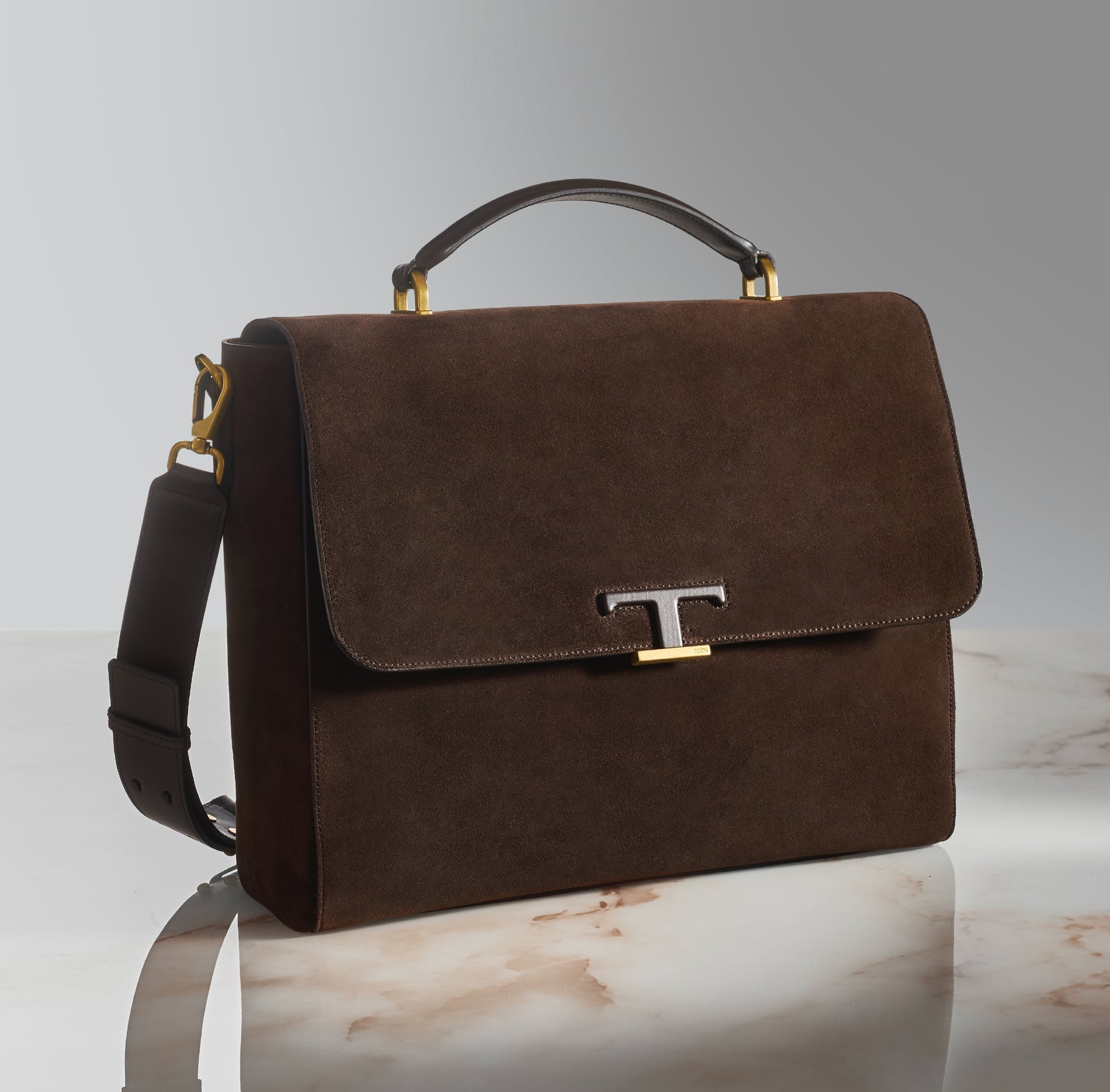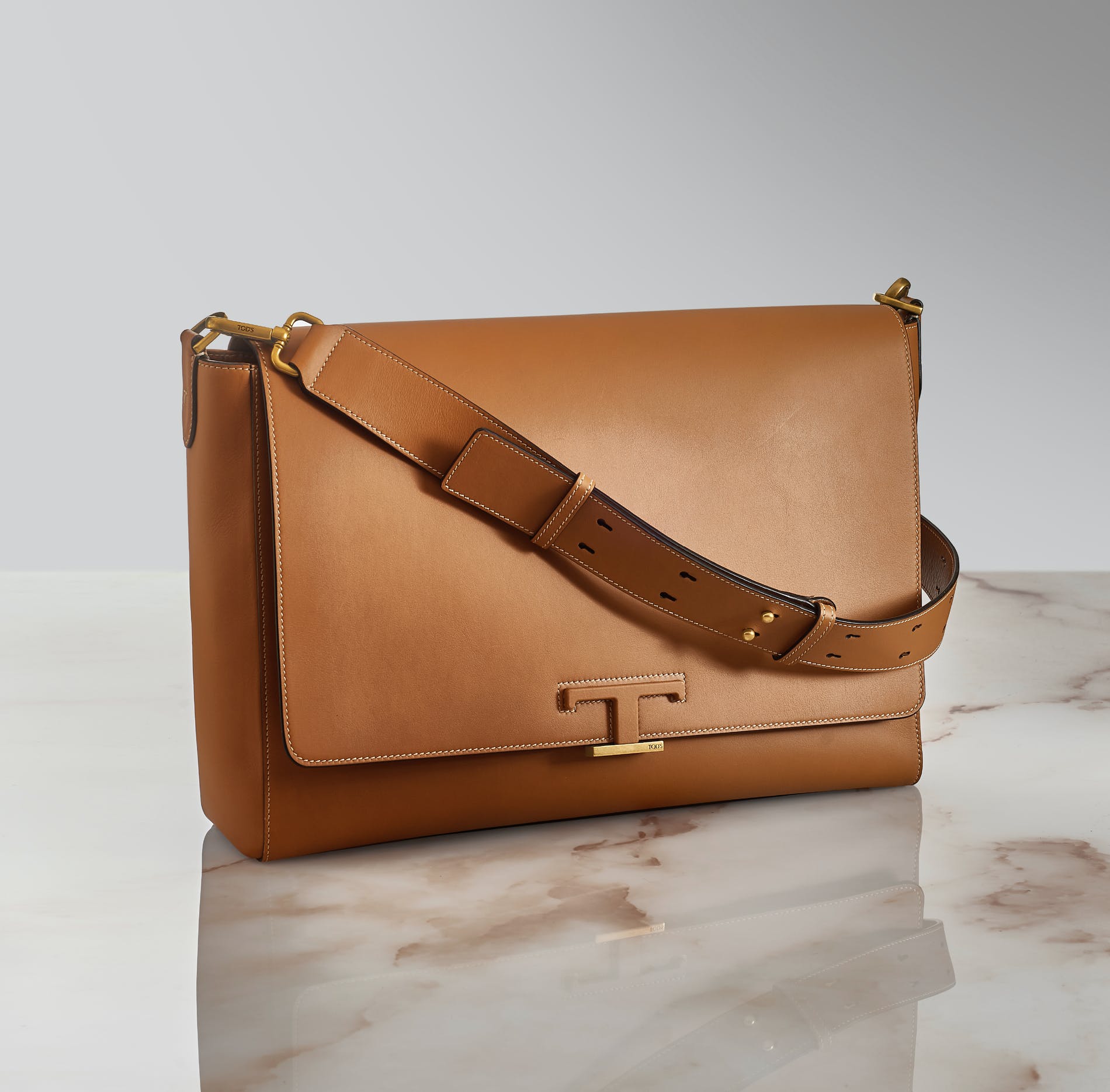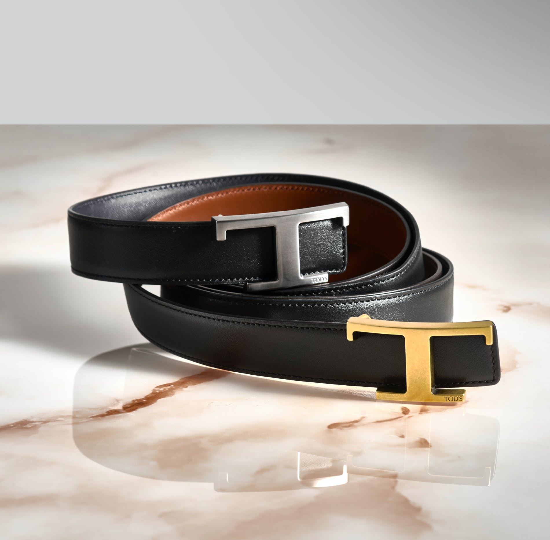 The new T Timeless, rediscovered in the archives, reappears as an enamelled buckle on loafers, or wrapped in leather as a fastening on bags that summarise timeless values in one incisive symbol.
