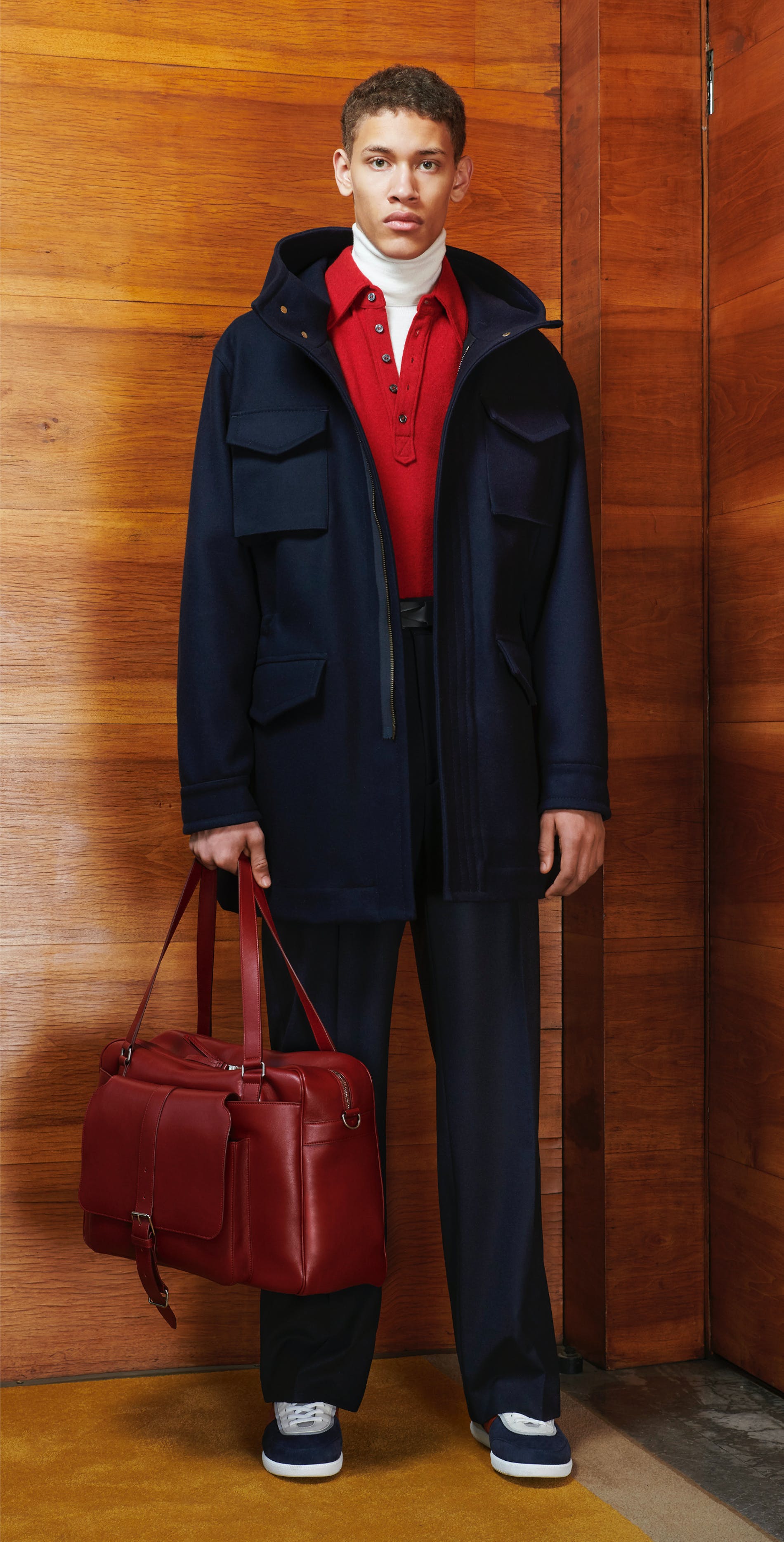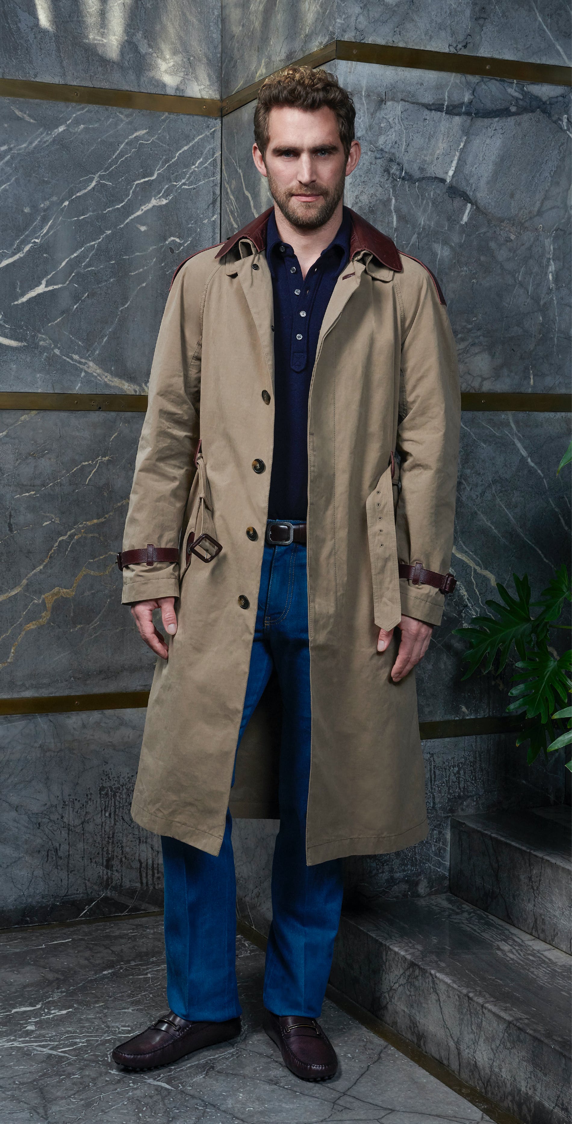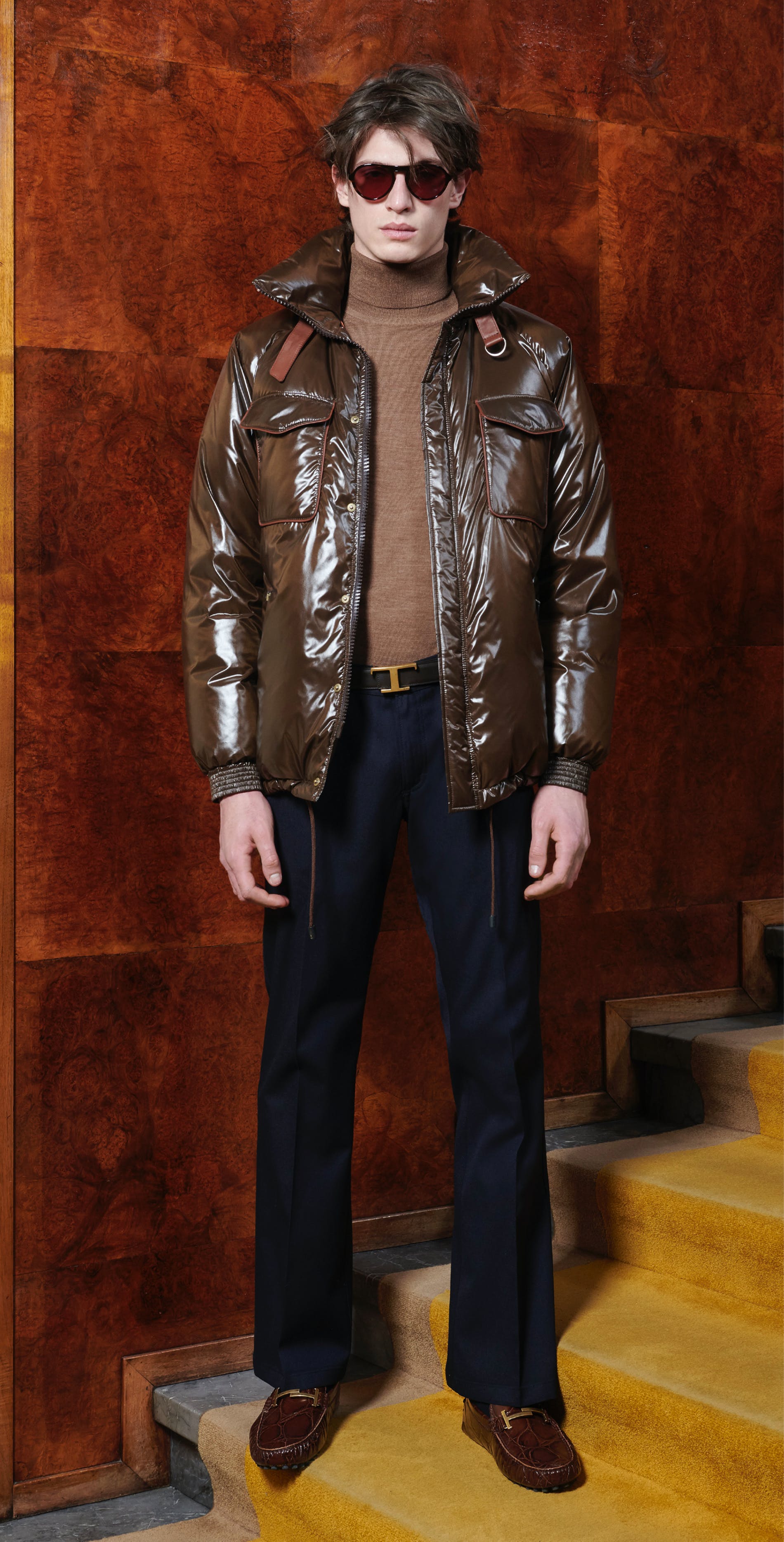 Italian style good taste is one strand of the Tod's DNA that pulls everything together: the palette of warm, timeless neutrals - camel, tobacco, khaki, white, black and denim blue - highlighted with notes of bright red; authentic materials such as cloth, cotton, kid mohair, silky-soft leather, and technical nylon. Good taste drives the idea of returning to true classics - the pea coat, the suit, the ski jacket, the dinner jacket and the trench coat, which becomes a technical outdoor garment with leather details, and the driving coat taken from the archives, is updated in different proportions and materials. Leather trims and saddlery detailing, old sewing techniques and research into materials accentuate Tod's refined craftmanship.