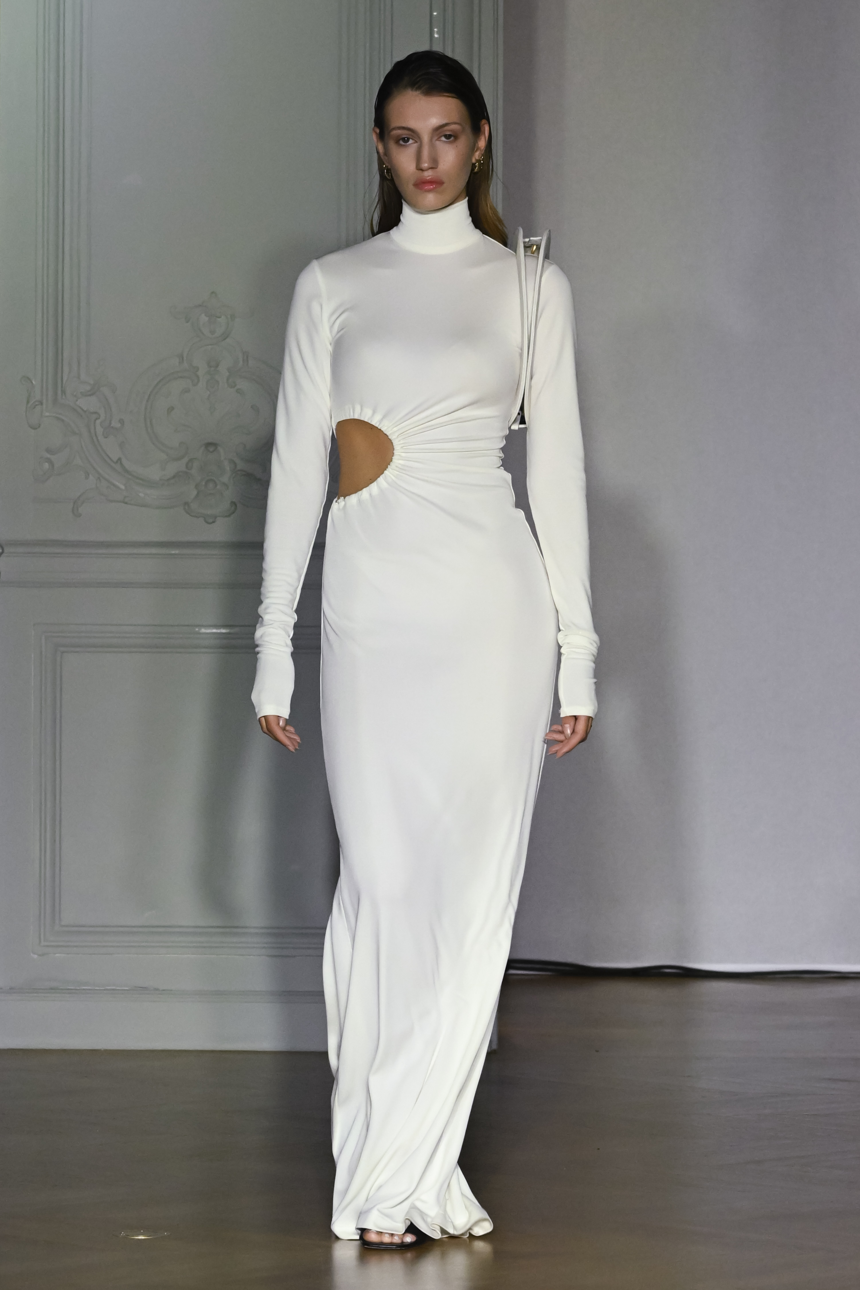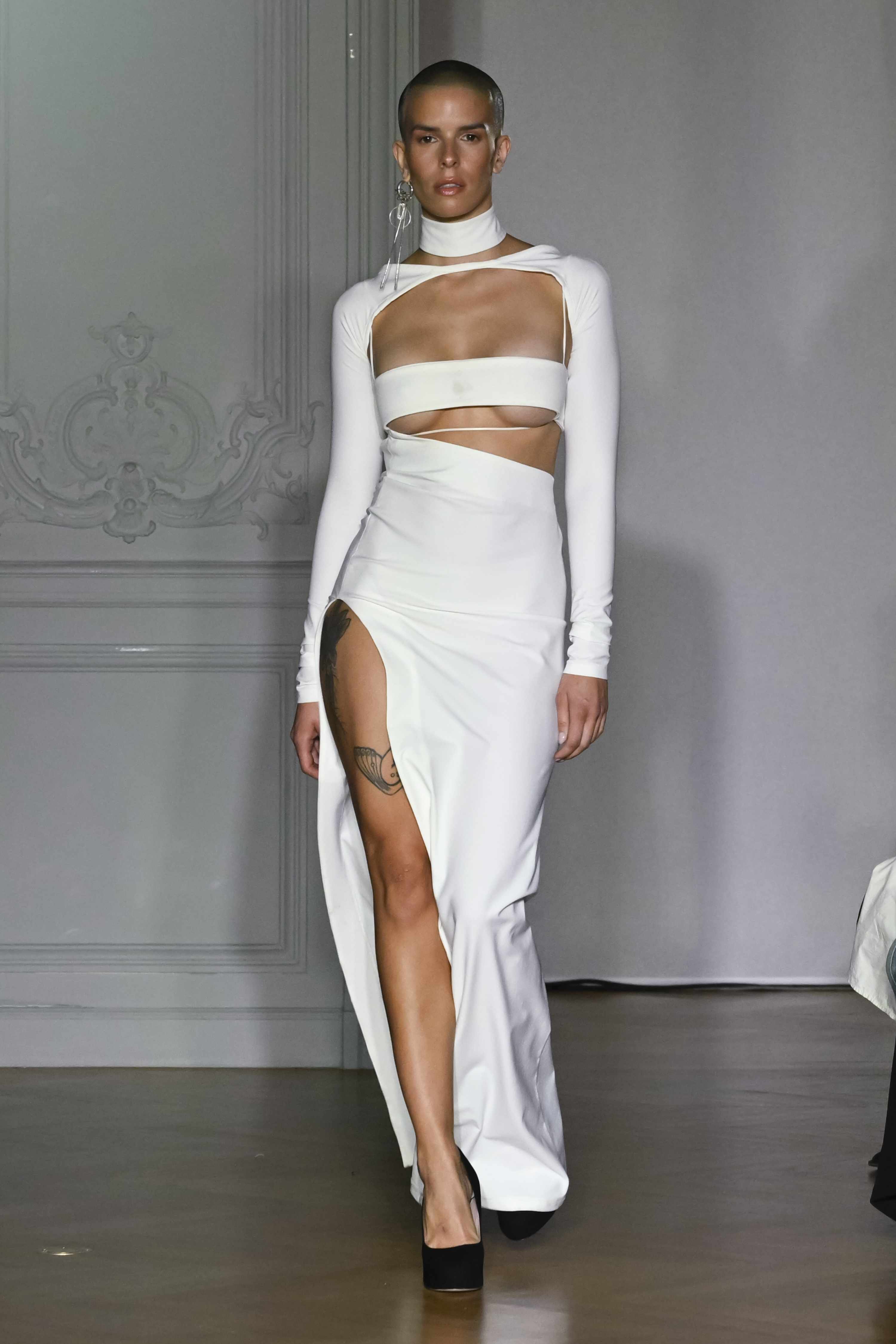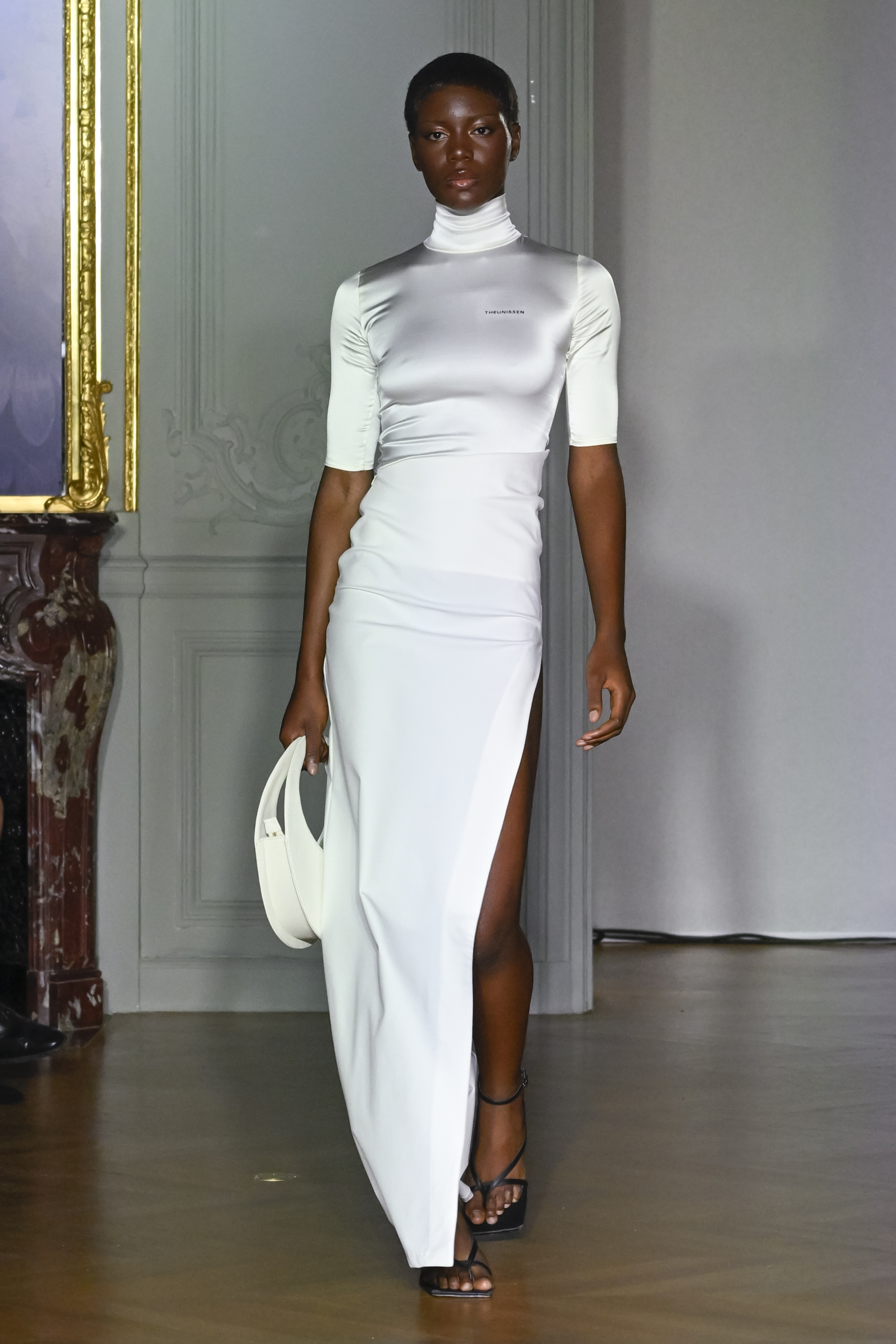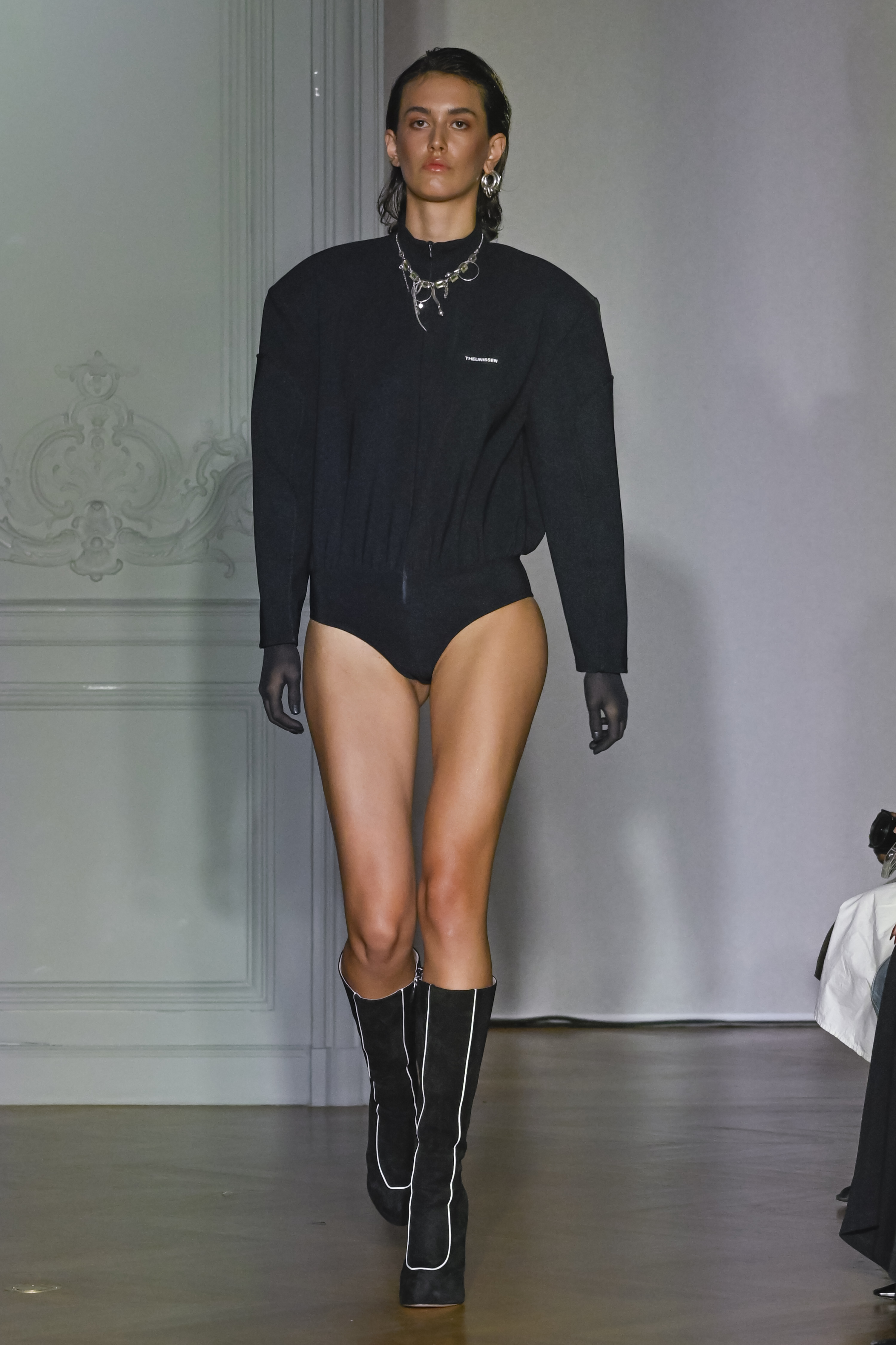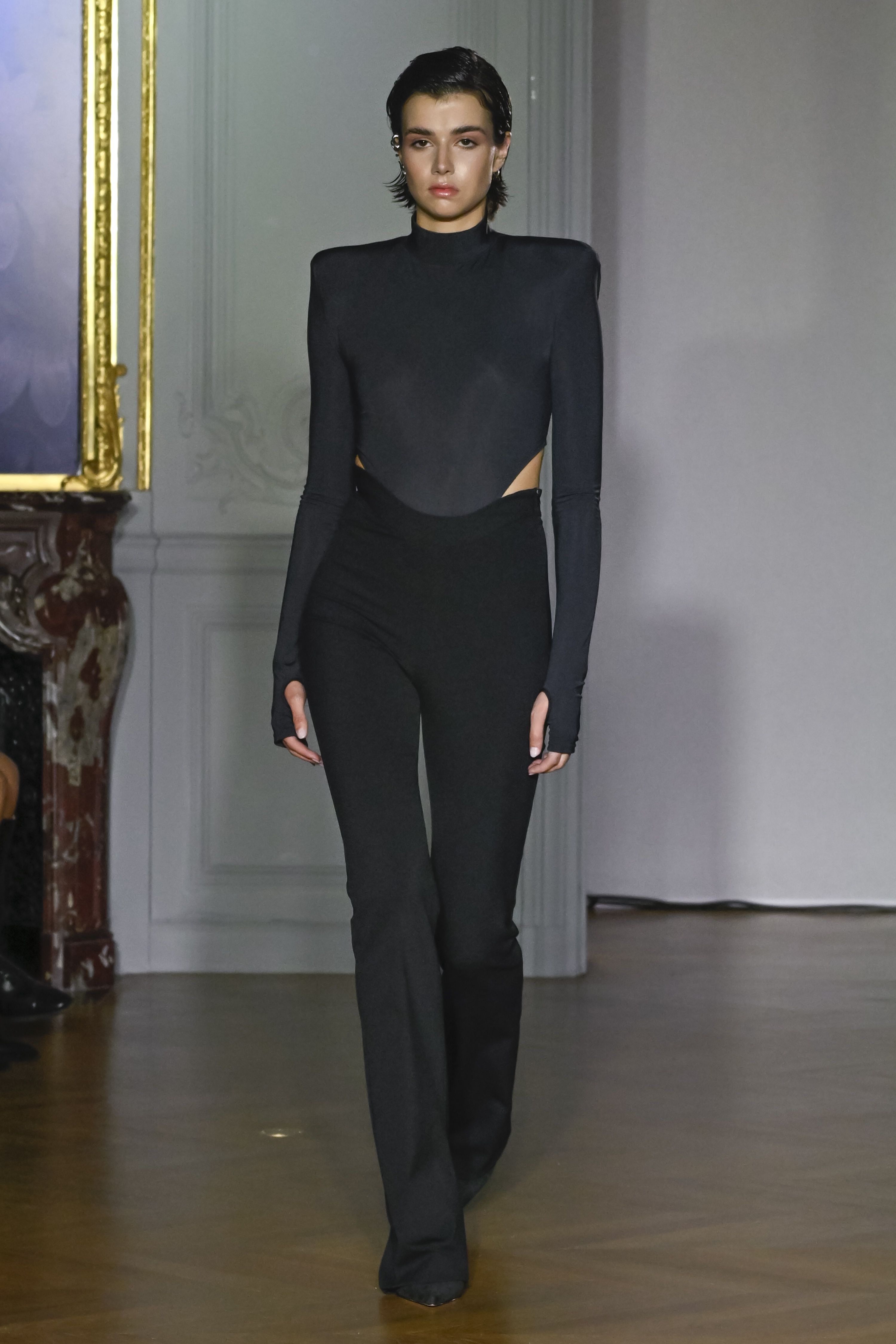Indeed, the second skin is the driving line of this collection while maintening her artistic direction inspired by the 80s, giving birth to hourglass silhouettes, XXL shoulders and mini waistes.