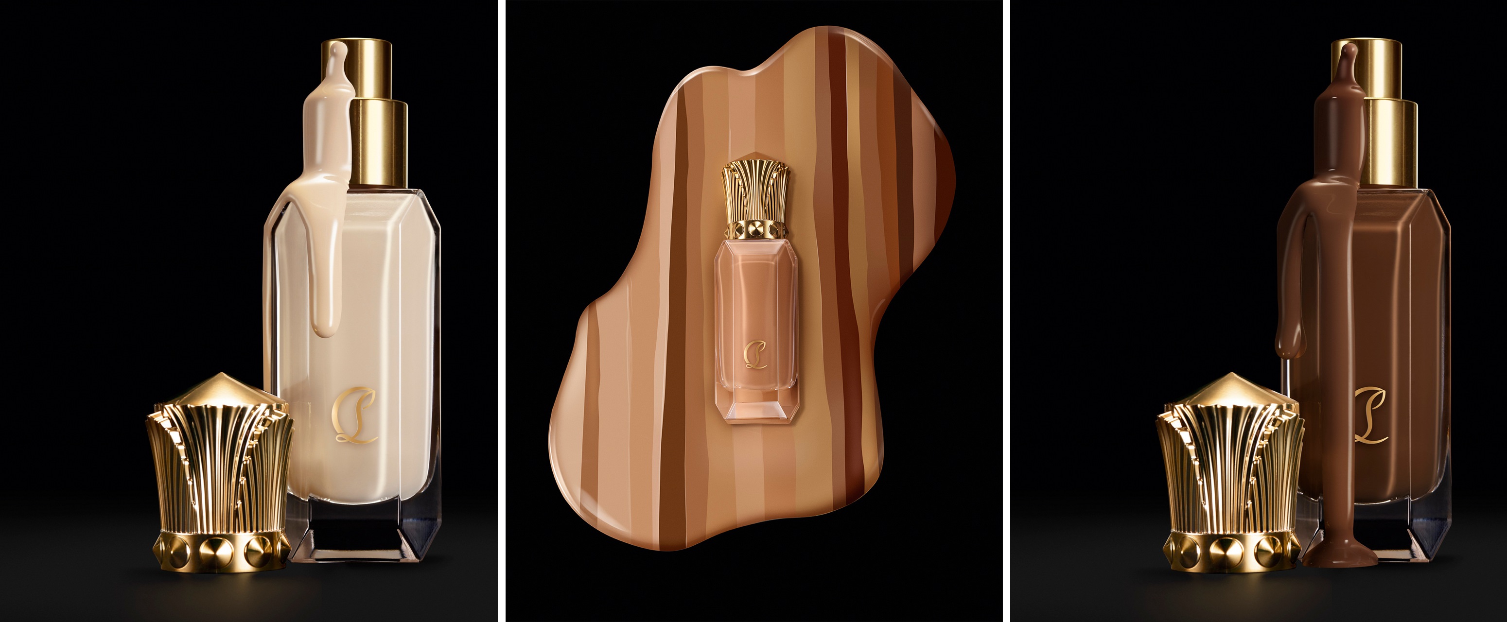 Beauty steps into the next level with a Christian Louboutin facetted, monogrammed glass bottle. Iconic design with a precious gold cap. Contemporary yet timeless, art deco meets the now. A luxury foundation that feels just as remarkable as it looks.