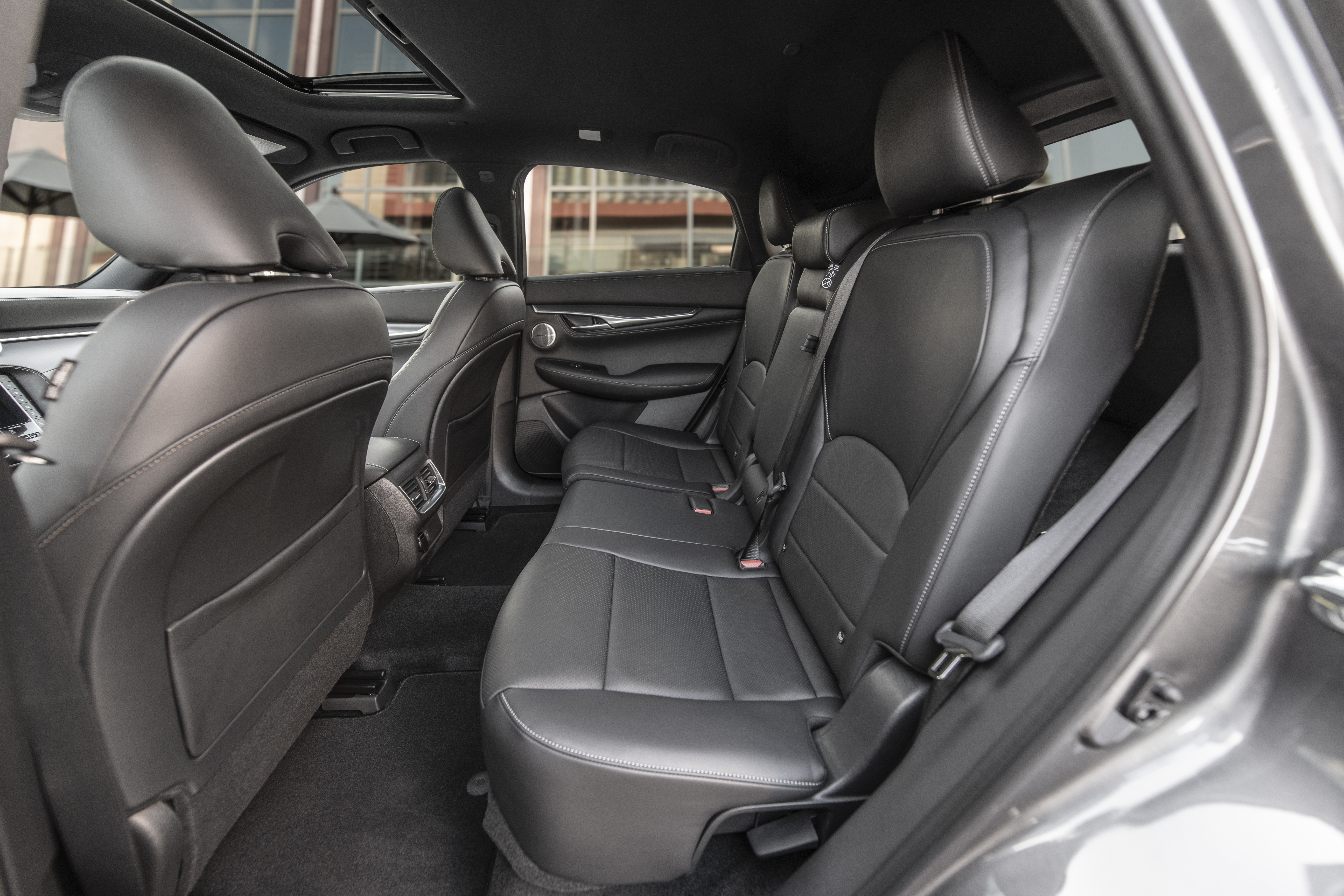 Authentic leather is an update on the LUXE grade that adorns all seats, finished with laser-cut stitching that also creates unconventional shapes on the door panels and dashboard, defining the interior of the QX55.