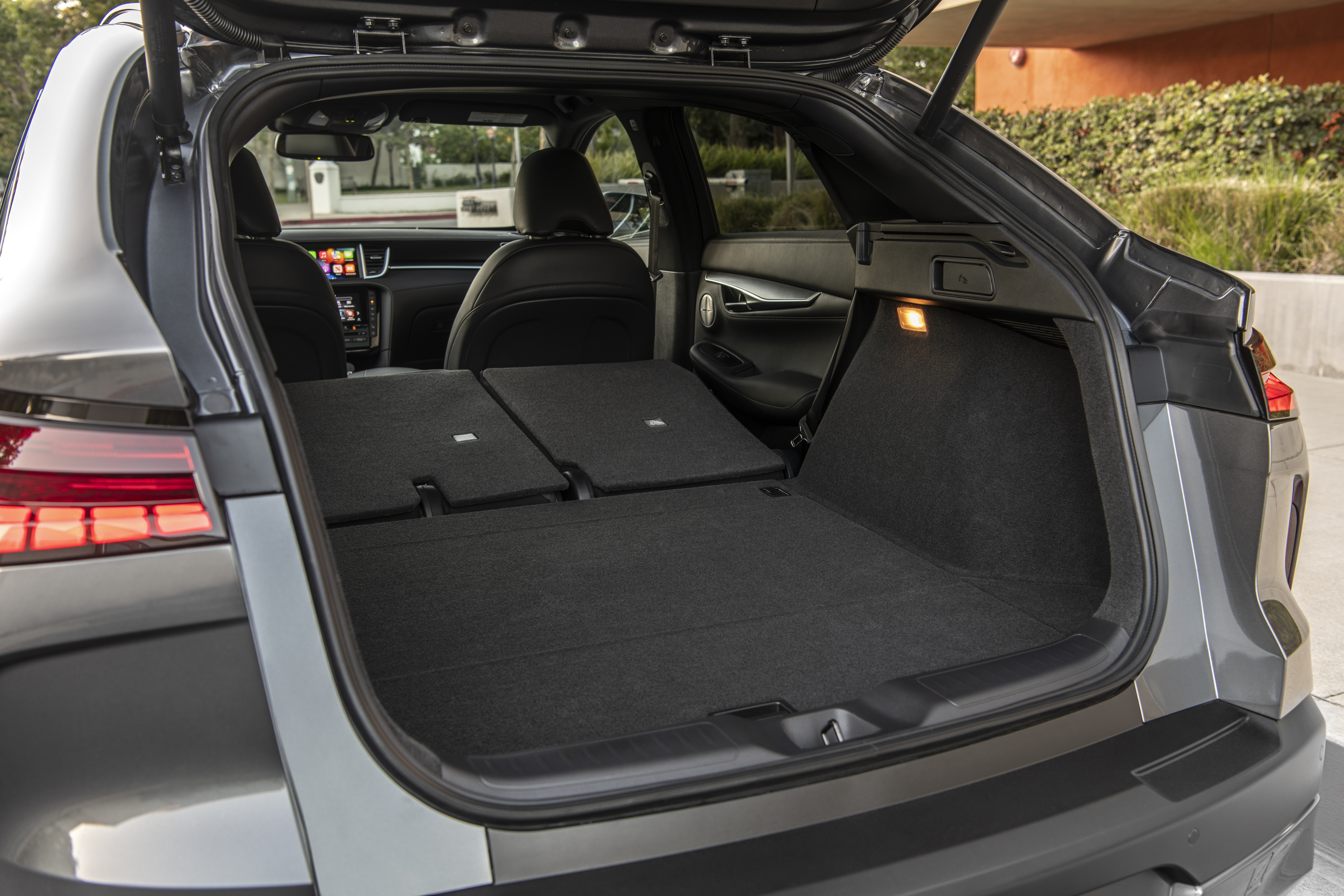 At the rear, the QX55 embraces a minimalist look with an integrated badge that not only portrays the road ahead in INFINITI's iconic logo, but also operates the standard power rear liftgate in a single, cohesive design. The rear door handles offer integrated LED welcome lighting and distinctive taillights offer depth and dimension, with an arrangement emulating the keys of a piano.
