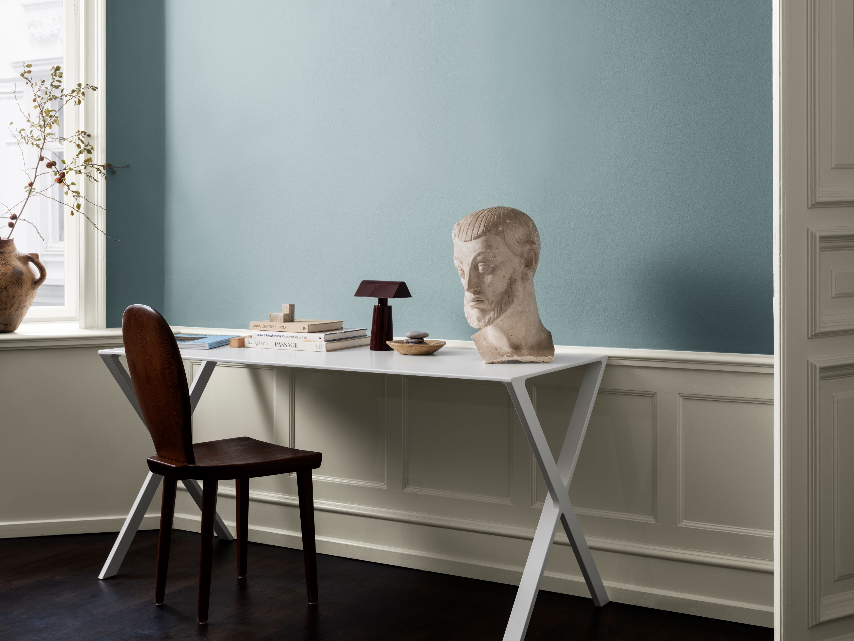 A thoughtful and composed blue with an aura of timelessness, this hue evokes spaciousness, ambition and novelty. Often associated with futuristic themes due to its clean look, it works well in spaces with natural lighting and when complemented with chalky-coloured furniture.