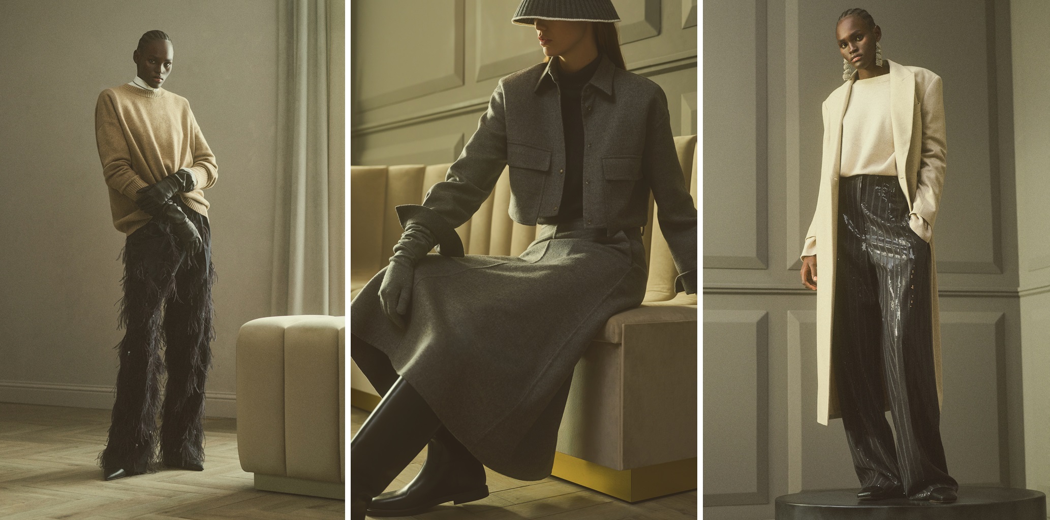 Accessories further reinforced the theme. The Soufflé bag gleamed with golden studs, while chandelier earrings and sculptural necklaces felt both bold and weightless. Oversized handbags spoke to the modern woman’s need for practicality without sacrificing style. Each piece carried an intentionality, resisting the fast-fashion cycle and emphasizing craftsmanship over trends.