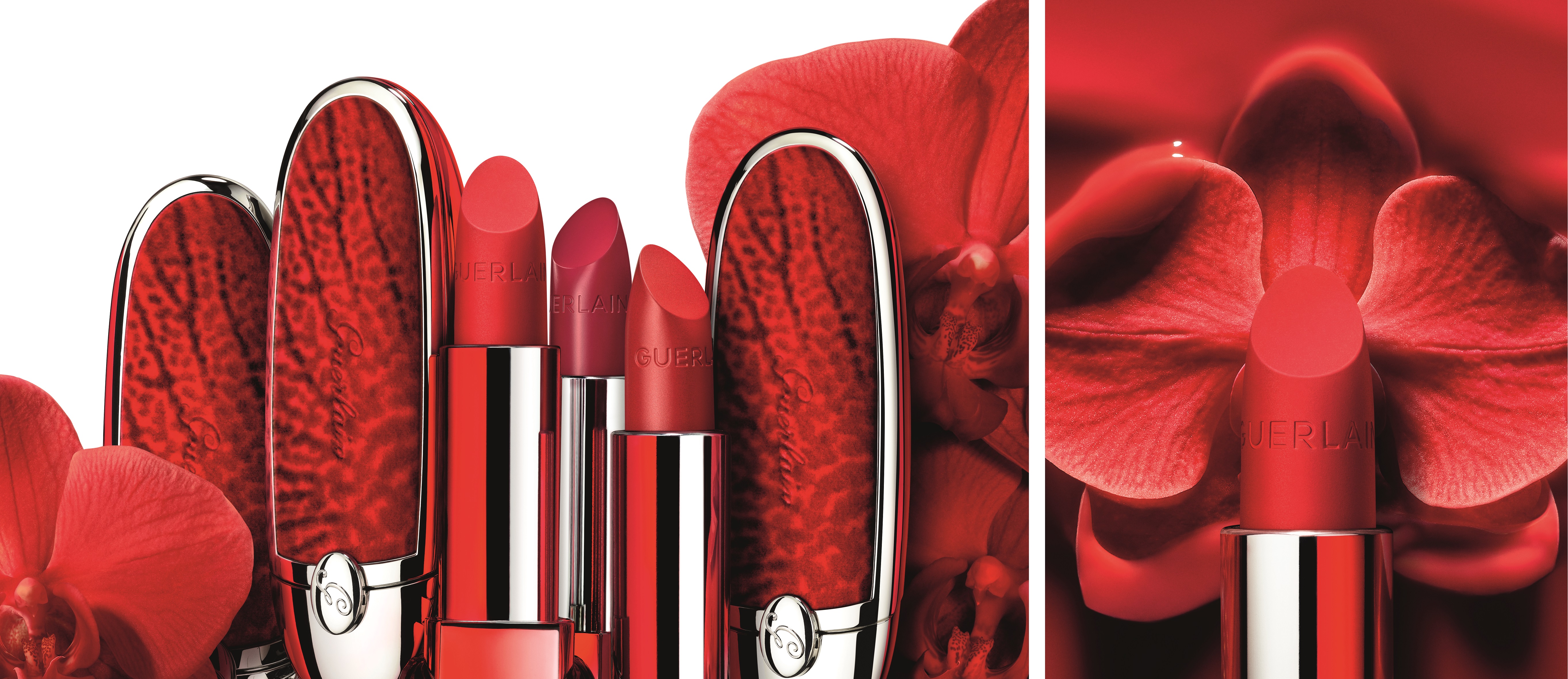 Chosen for their array of natural colours, three varieties of red orchids have inspired a new trio of ROUGE G shades, with three different finishes: