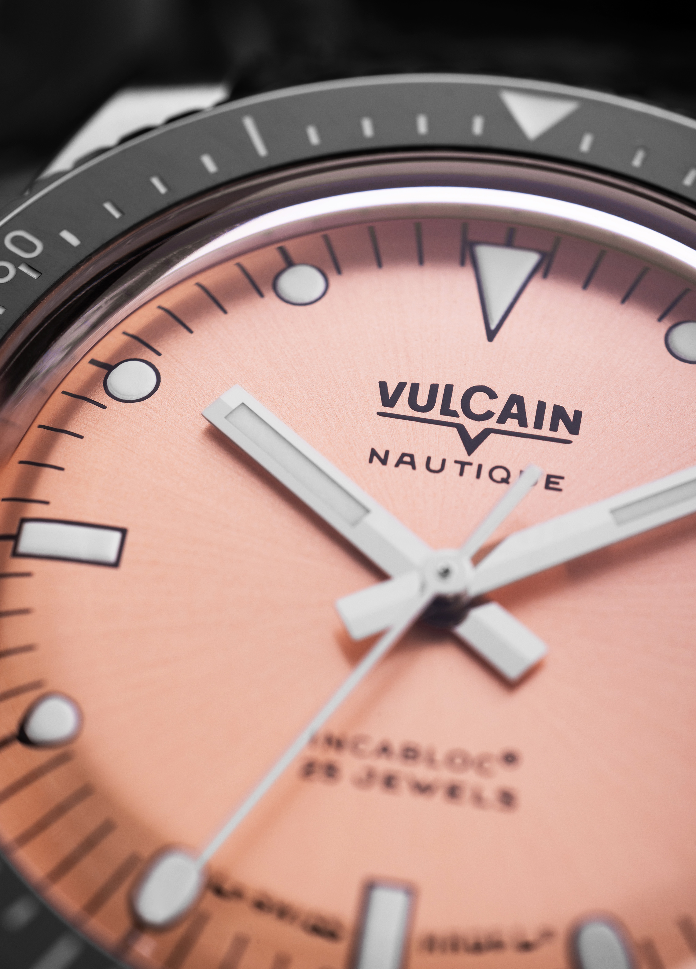 Always a favorite of vintage watch collectors, salmon dials have made quite a come-back with their unmistakable retro look. Beyond the historic appeal, it’s a color that complements all others. It keeps on trending, too. It was only natural for Vulcain to revisit the Skindiver Nautique: at Vulcain, all collections (Cricket, Chronographe 1970 and Monopusher) offer a model with a salmon dial in their line-up.