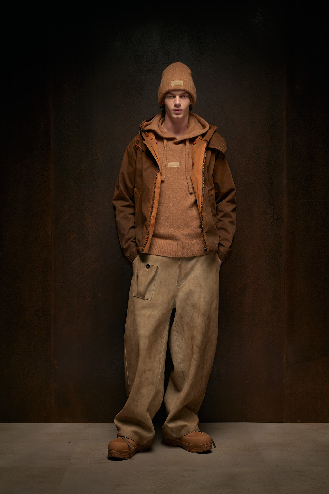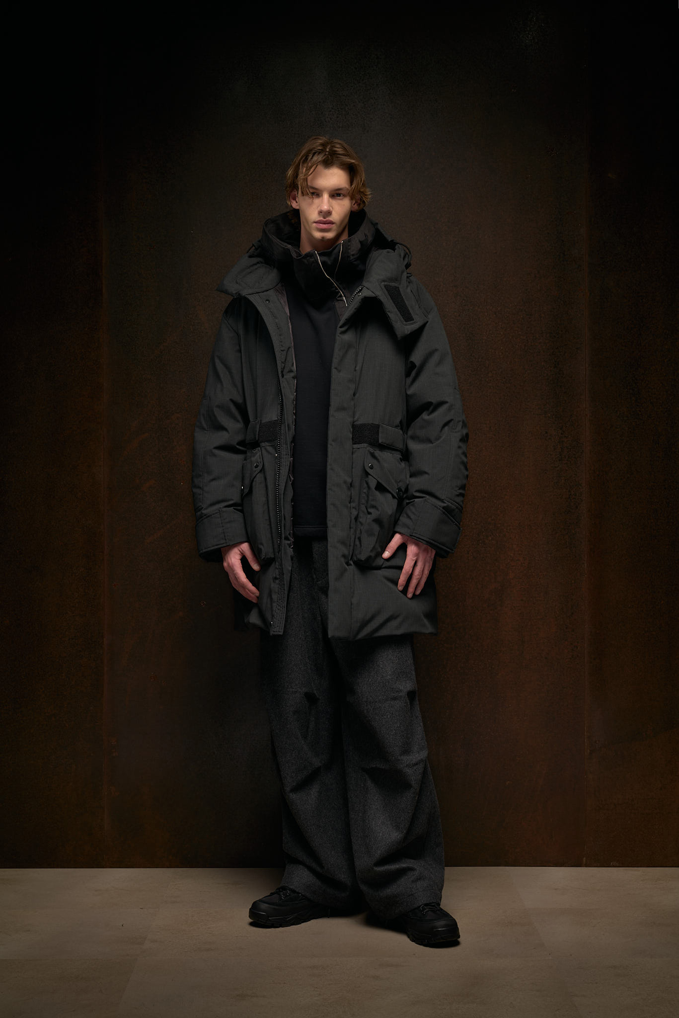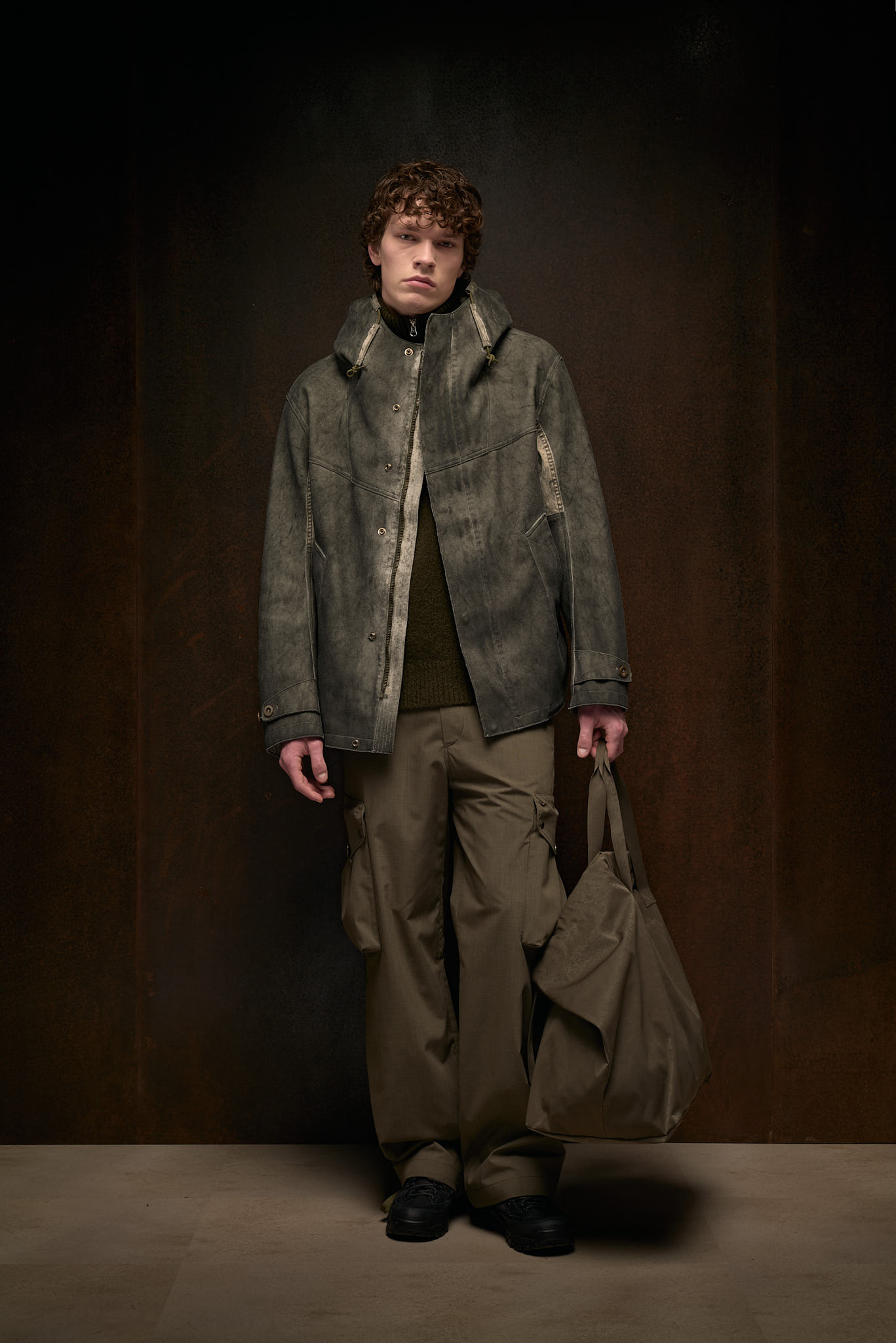 At the heart of TenC’s identity is Original Japanese Jersey (OJJ), a fabric that has become synonymous with the brand. Developed through meticulous processes, OJJ is a polyester/nylon interlock fabric that highlights softness and elasticity, offering a tactile experience that improves with age. "This softness and the way it wears over time, enhancing its characteristics, are key to the creation of our initial five iconic garments," Pungetti shares. These pieces, including the Anorak, Parka, Field Jacket, Tempest Anorak, and Cyclone Parka, have been part of TenC’s collection since its very first season, continually renewed through garment-dyeing techniques and seasonal treatments.