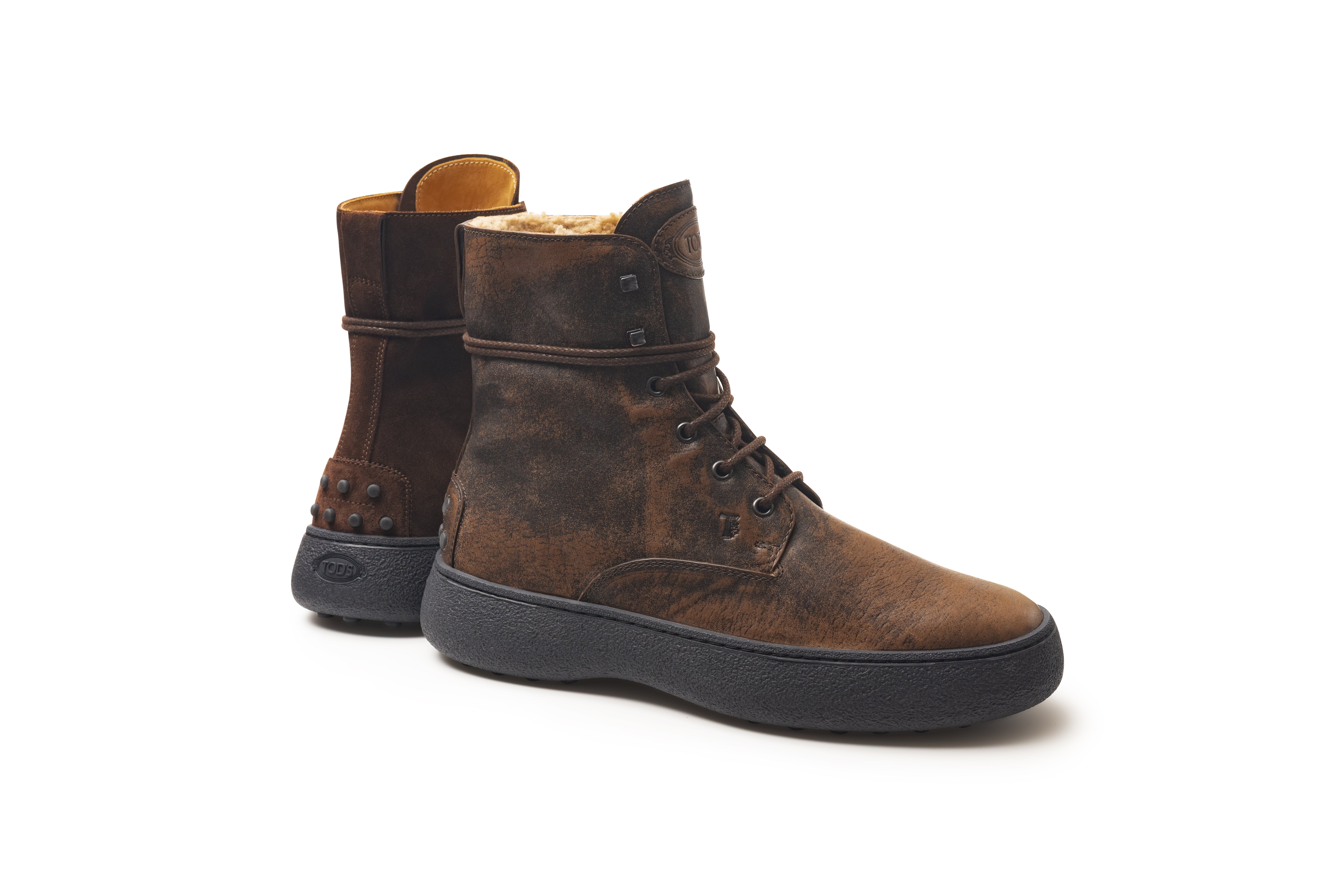 Tod’s W.G. is the result of the evolutionary path of the Winter Gommino. Featuring bolder, striking proportions, its higher sole stands out even more against the uppers. The refined materials of this iconic Tod’s model contrast with a lived-in leather effect, for a more relaxed masculine appearance. In particular, the new proposals include the brushed, glossy models that make it a real “must have” for the season.