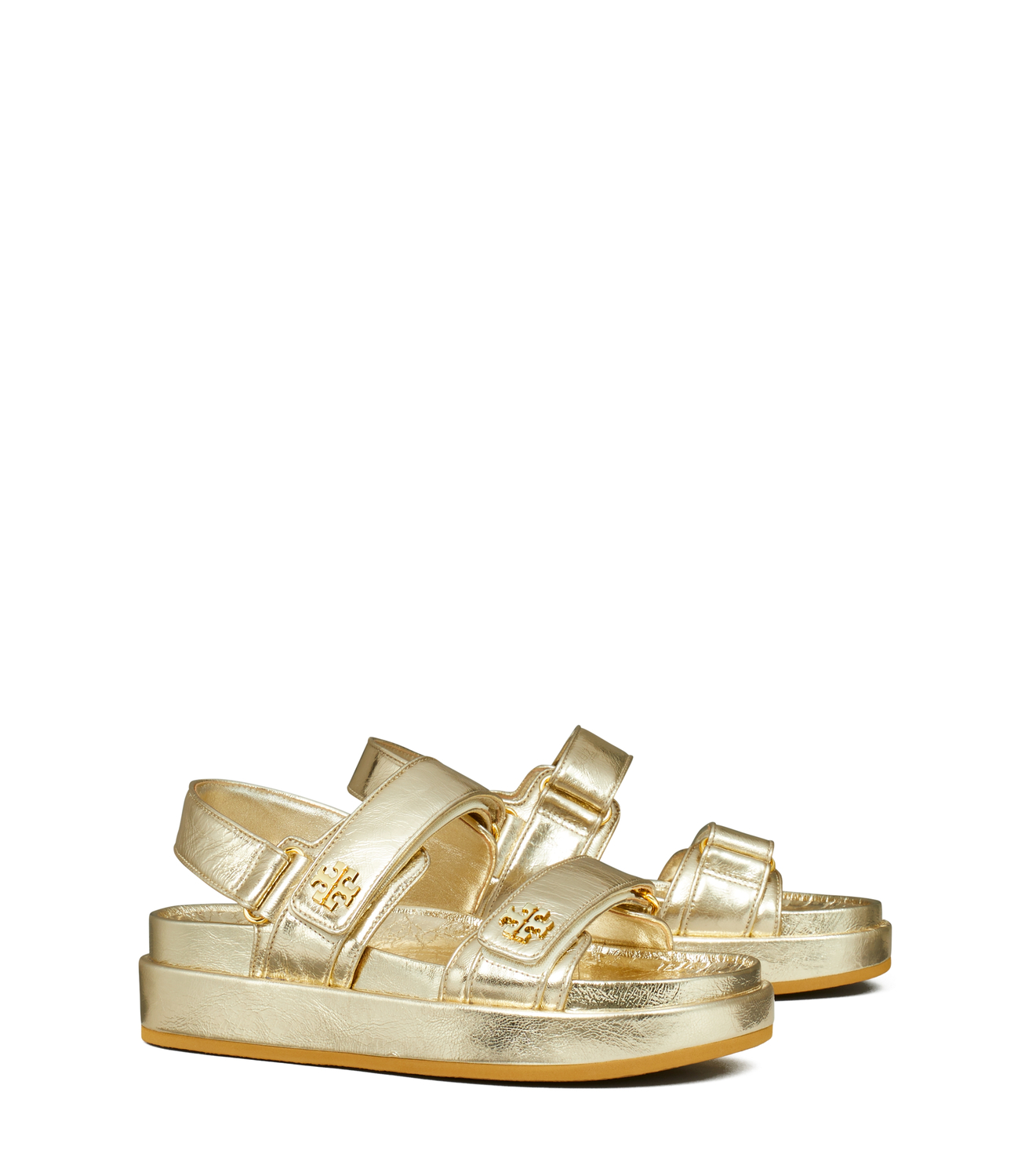 Our Kira Sport Sandal pairs crinkled metallic leather with an ultra-comfortable molded leather footbed and rubber sole. Utilitarian velcro straps are detailed with our signature logo.