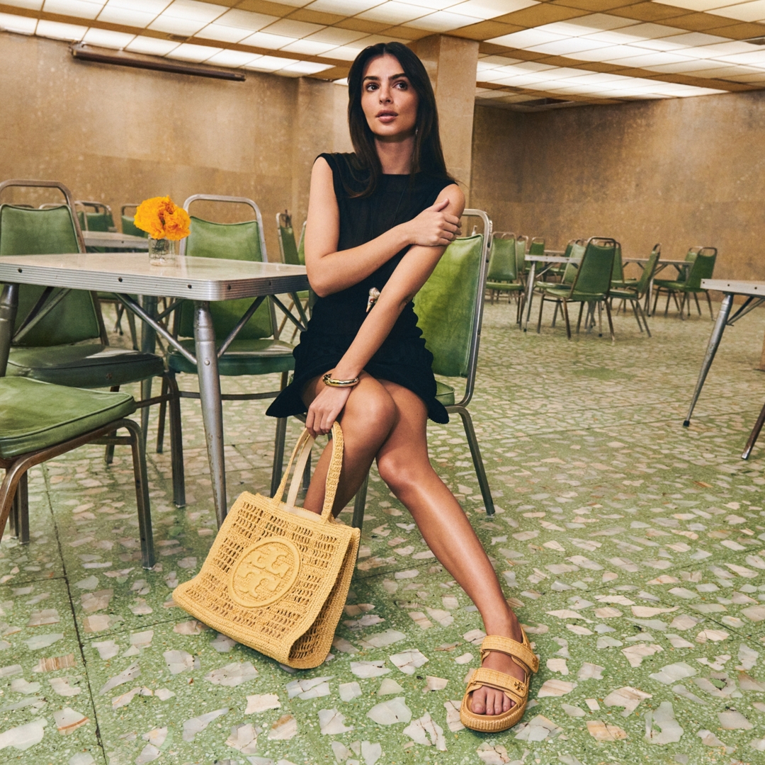 Inspired by Tory's love of woven baskets, the iconic Ella tote is made for summer in hand-crocheted raffa with an embroidered Double T. Ideal for every day and getaways, it has room for the essentials.