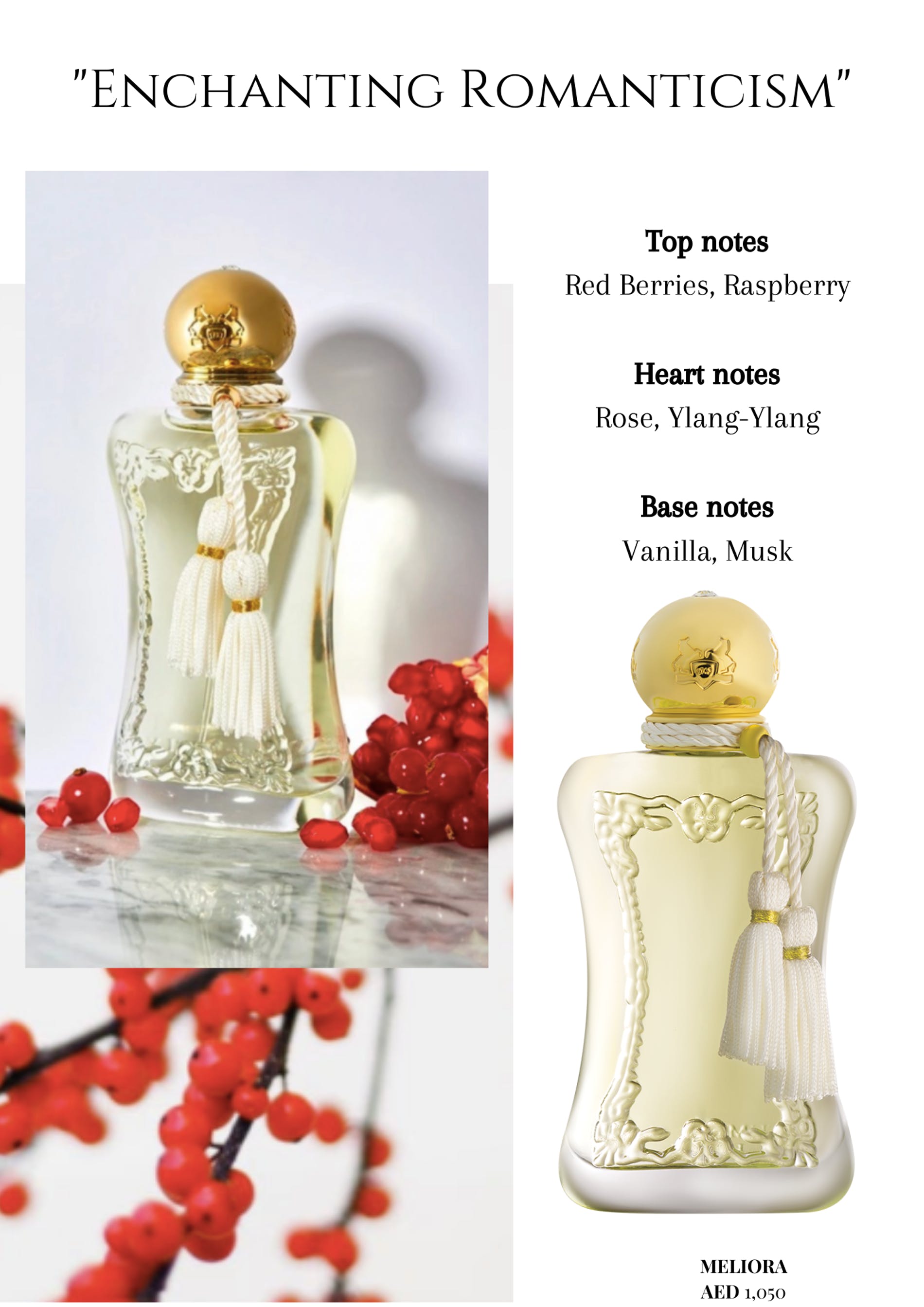 For those who prefer the subtle fineries in life, Meliora is the perfect present. Enchanting with its romanticism, Meliora is a delicate cocktail of fruits and flowers. A fragrance with a sparkling character.