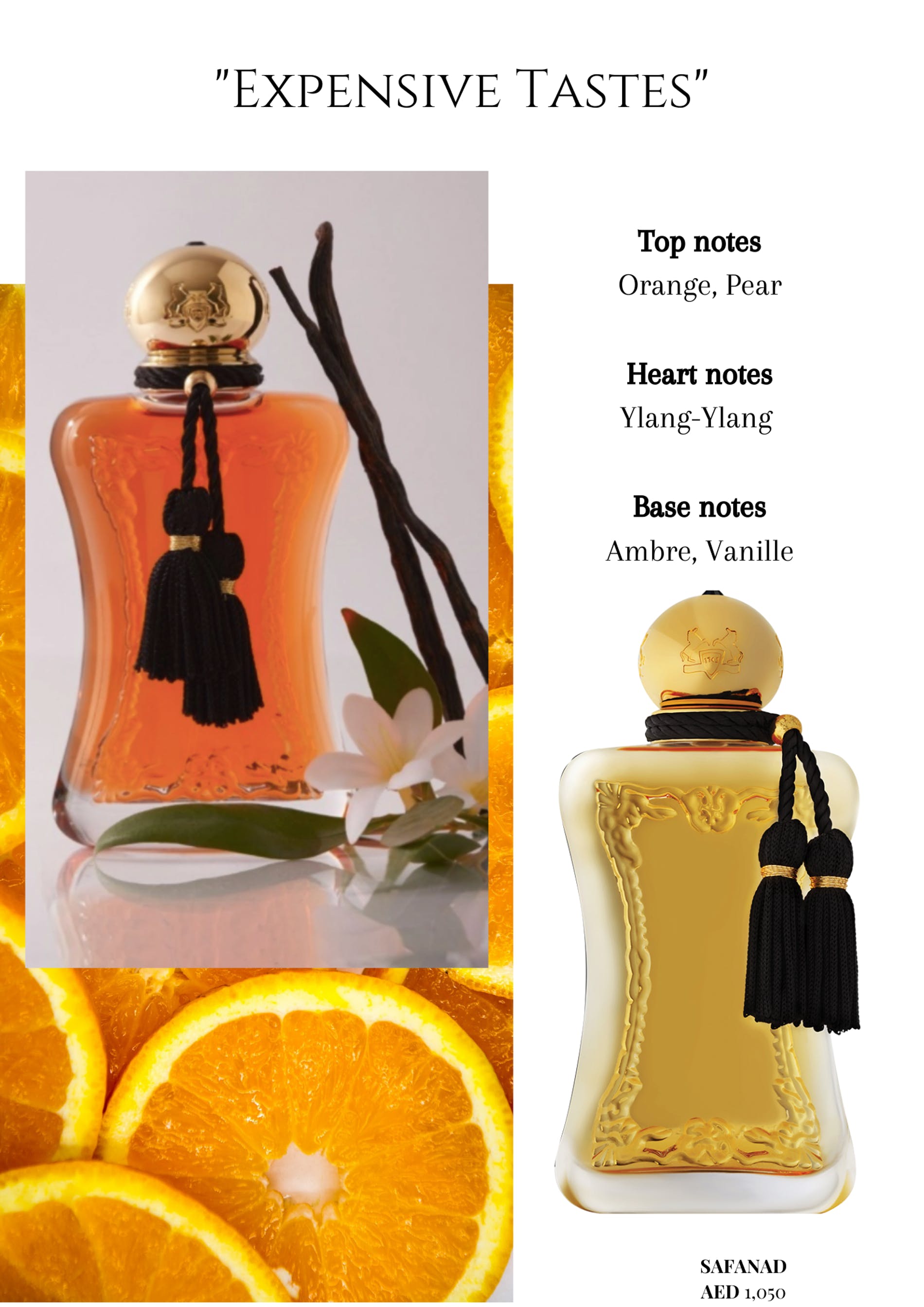 Dubbed a compelling sensual fragrance, Safanad is the ideal gift for true perfume connoisseurs. The mysterious Orient is captured by its delicate notes of orange blossom, iris and ylang-ylang, leaving its wearer captivated by its richness.
