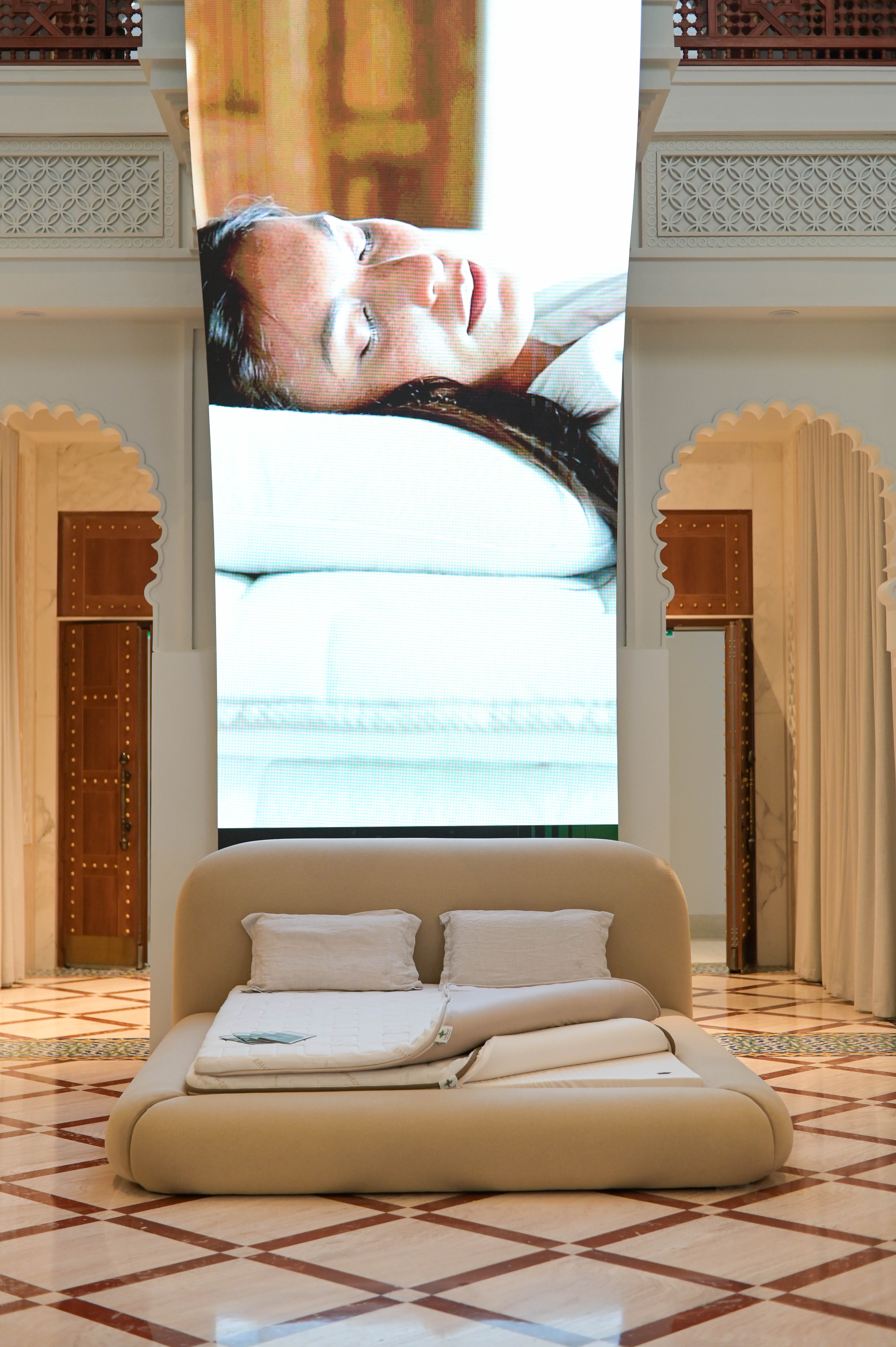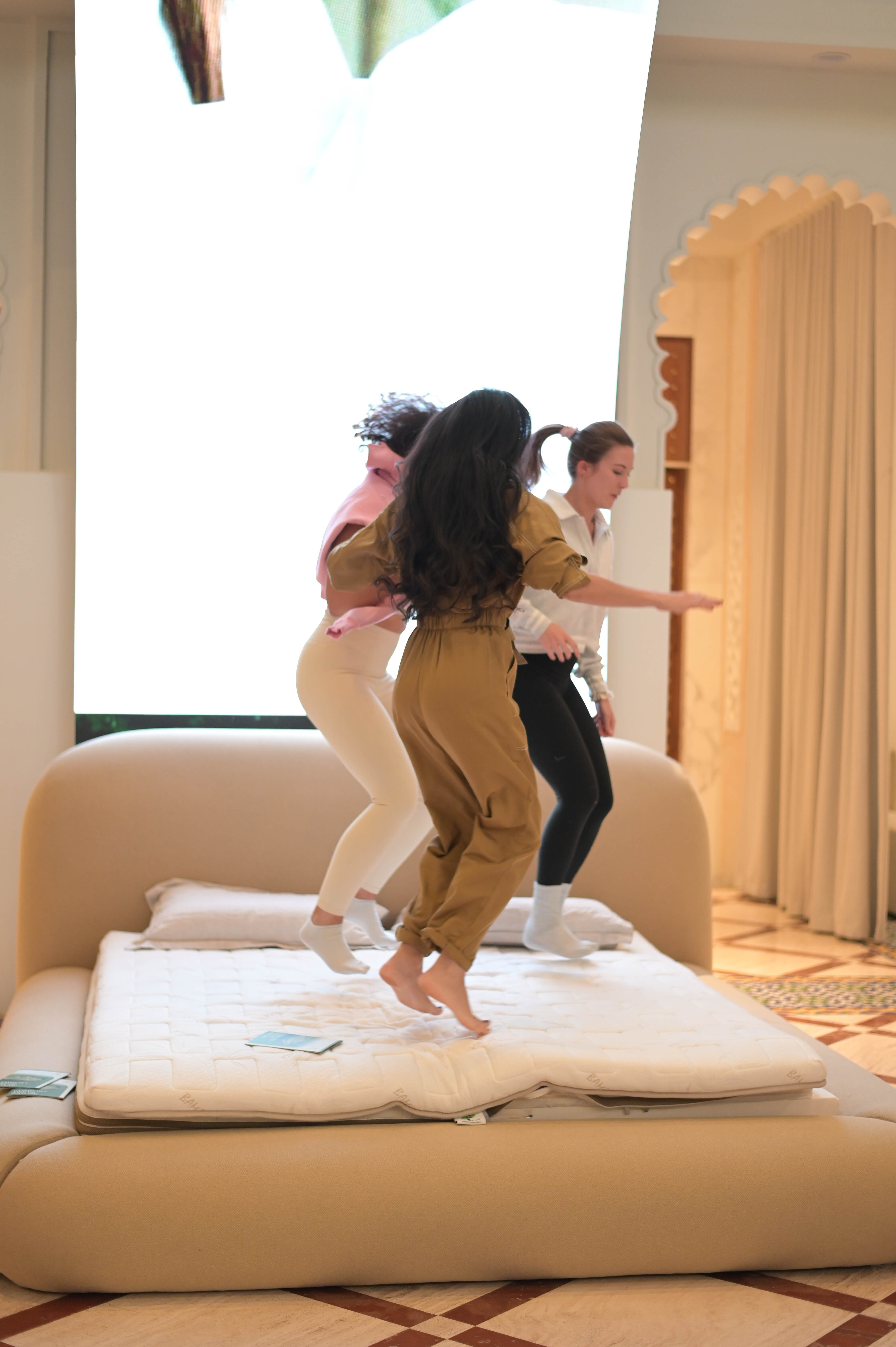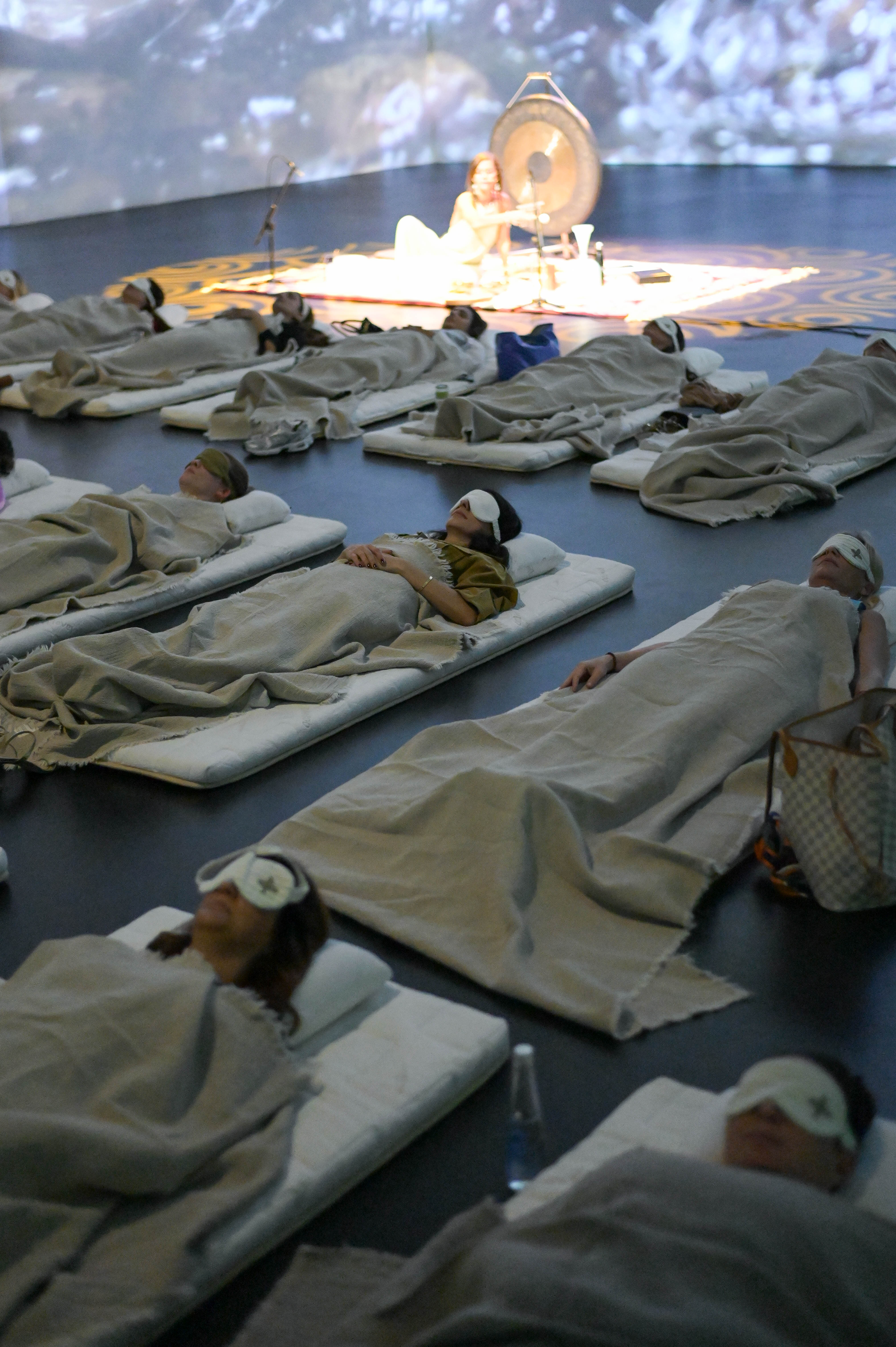 Guests experienced a few moments of calm under a digital forest projected across the full dome ceiling, as they were supported, both physically and energetically, by Heveya®’s Cloud Mats, made from 100% organic latex and natural cotton. Thoughtful additions like aromatherapy, eye masks and curated wellness tools elevated the experience into multisensory moments of peace, so rare to capture ordinarily. Guests were served ceremonial matcha by Health Nag, allowing time to reconnect and reflect, bringing the relaxing launch event to a grounding close.