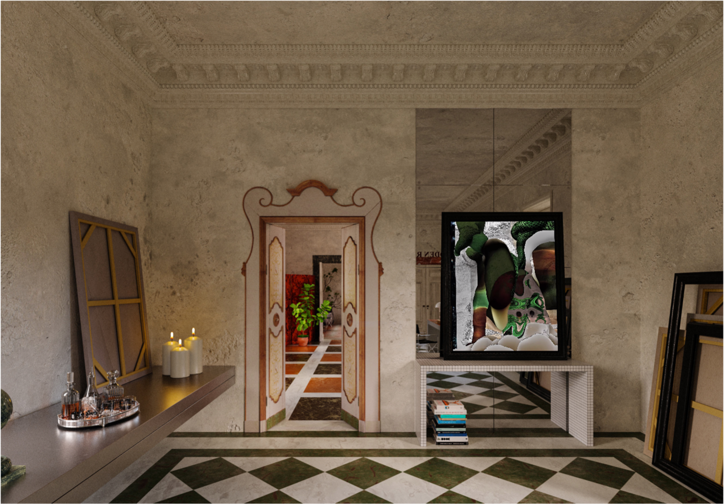 Architecture, design and mysterious atmospheres, rooms that hosts an exclusive NFT artwork by Sara Ludy, Valentino on Canvas artworks exhibited on the virtual walls and an hidden room showcases the Rockstud Alcove universe.