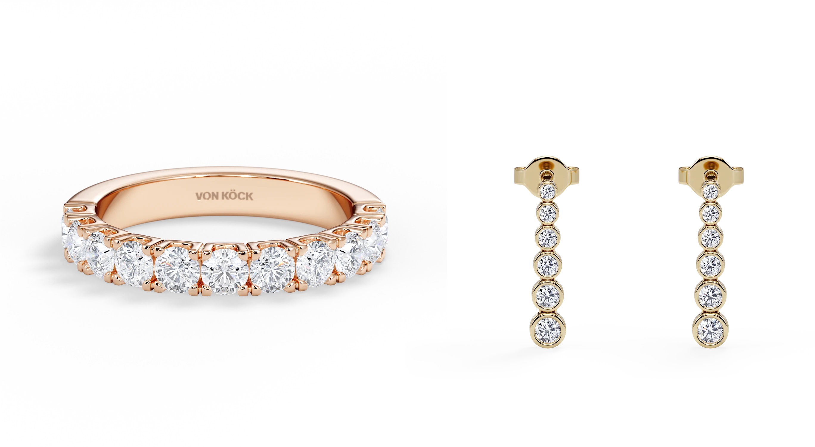 Von Köck is pleased to showcase an array of elegant bracelets, a set of daring drop earrings, and a timeless 18-karat gold rosé diamond ring. Each piece exudes sophistication and charm. Crafted with the same dedication to quality and individuality, these pieces complement any style, making them perfect tokens of affection for your loved one this holiday season.