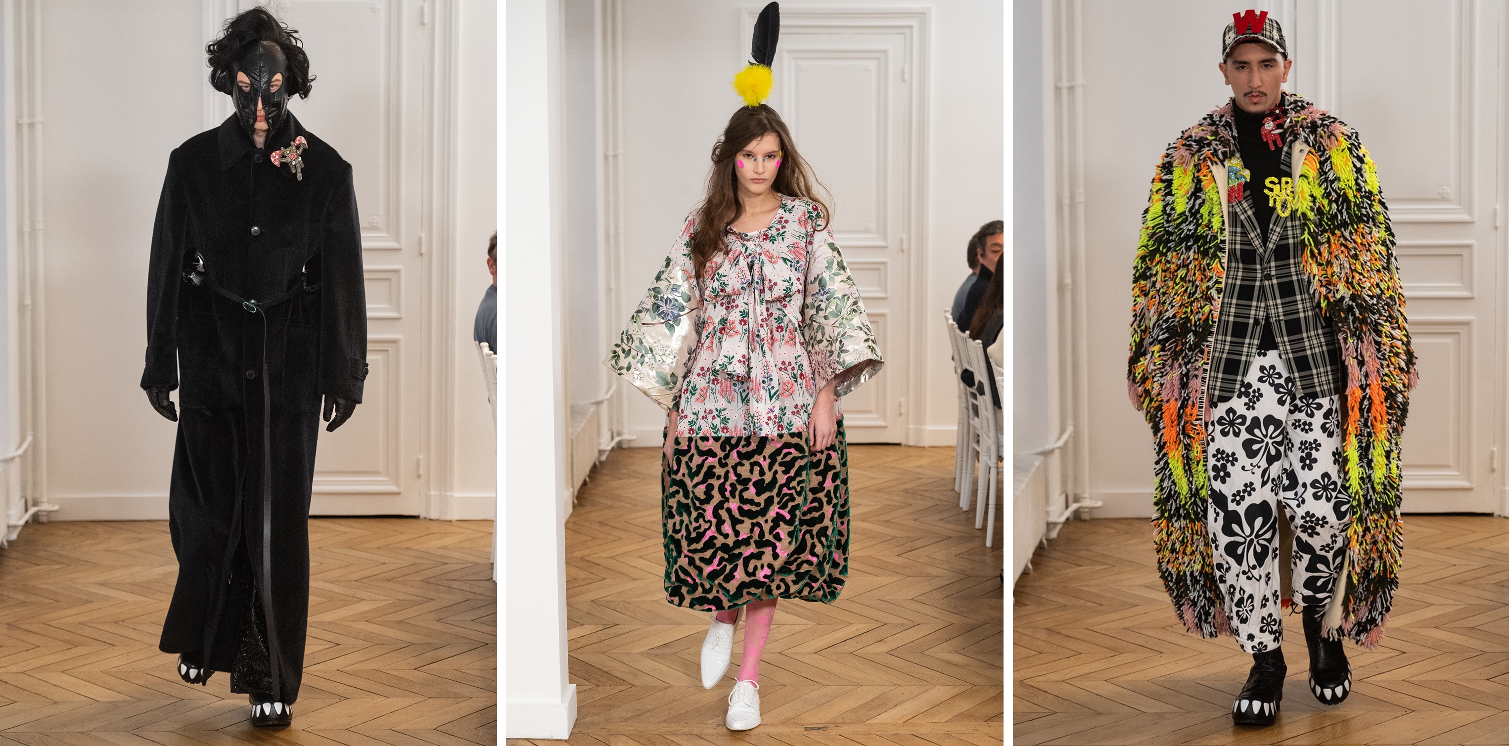 All the clothes from the collection are brand-new, But to underline this random way of creating I went back to some of the styling and make-up I did 30 years ago for the W.&L.T. shows, using hats realised by Stephen Jones and accessories from my archive.