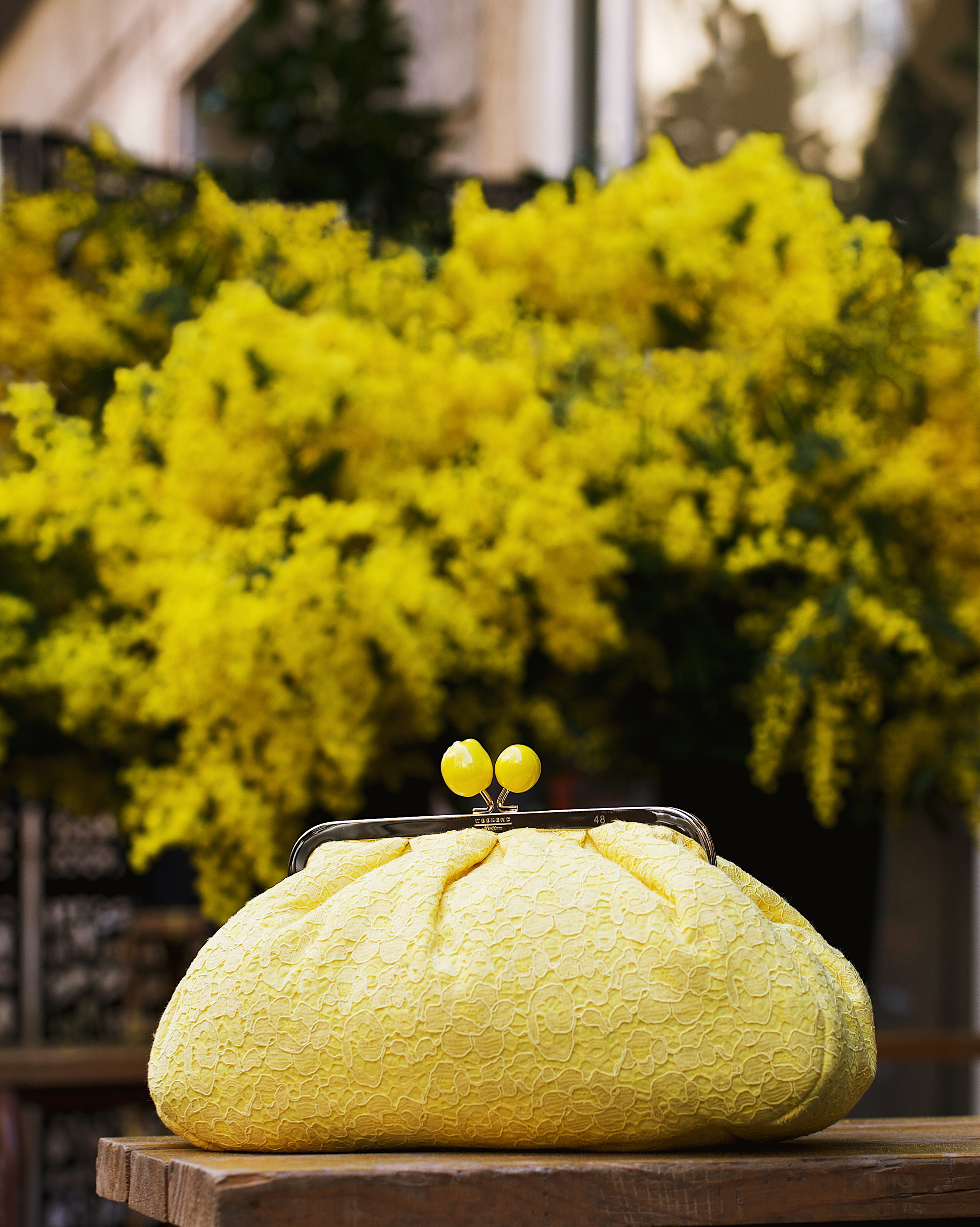 The overall visual effect of this new version of Weekend Max Mara’s playful Pasticcino clutch, named after the Italian word for “small pastry,” is a richly-textured romanticism to wear all year round, from dawn to dark.