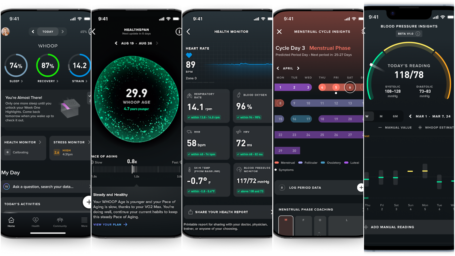 ● Women’s Hormonal Insights. WHOOP goes beyond cycle tracking to deliver science-backed education and personalized insights on how hormonal shifts influence recovery, sleep, stress, and performance. Whether you’re navigating menstruation, pregnancy, or perimenopause — WHOOP adapts with you.