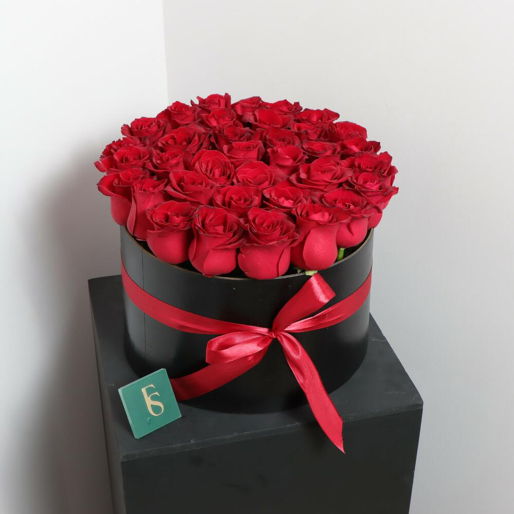 This lavish 35-rose arrangement combines red blooms with delicate accents in a luxury box to captivate her heart and soul. Signifying unconditional love, this age-old classic embodies romance with its striking presence, making it a meaningful expression of love and devotion.