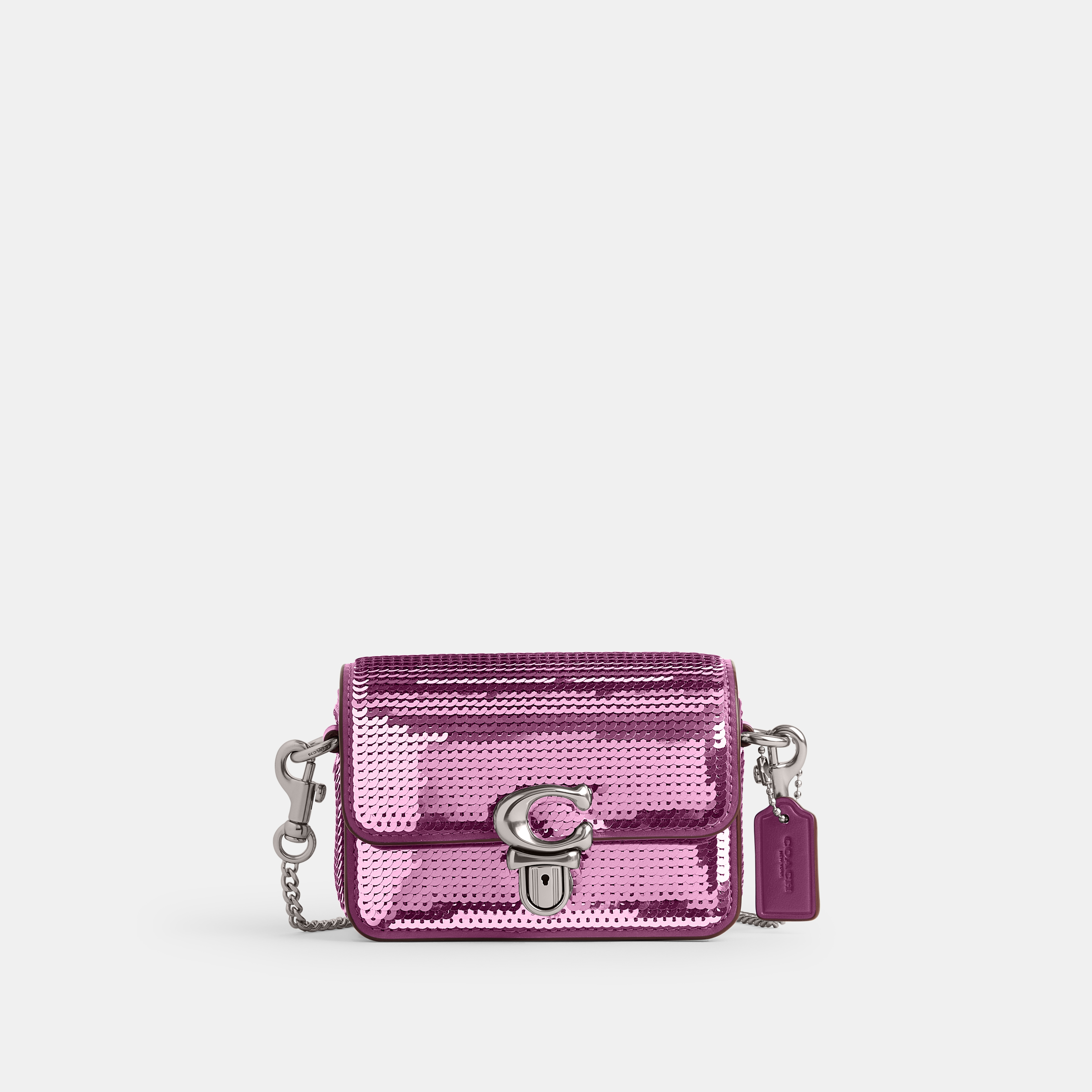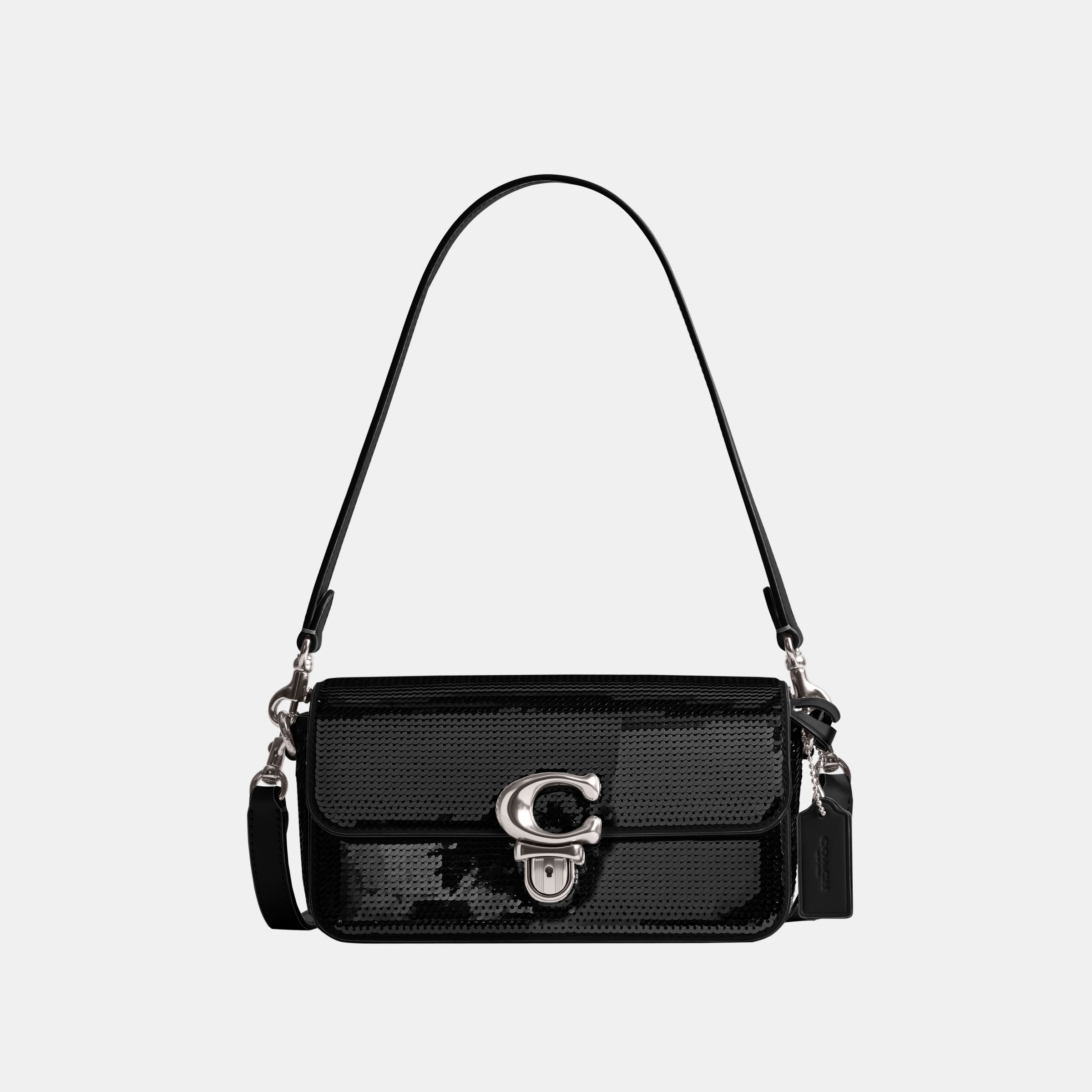 Coach's Studio Baguette is a polished piece that can be used for day trips or dinner dates. Expertly made from smooth leather and adorned with sequins, the shoulder bag is accented with the iconic C logo and can be carried using the top handle or optional shoulder strap.