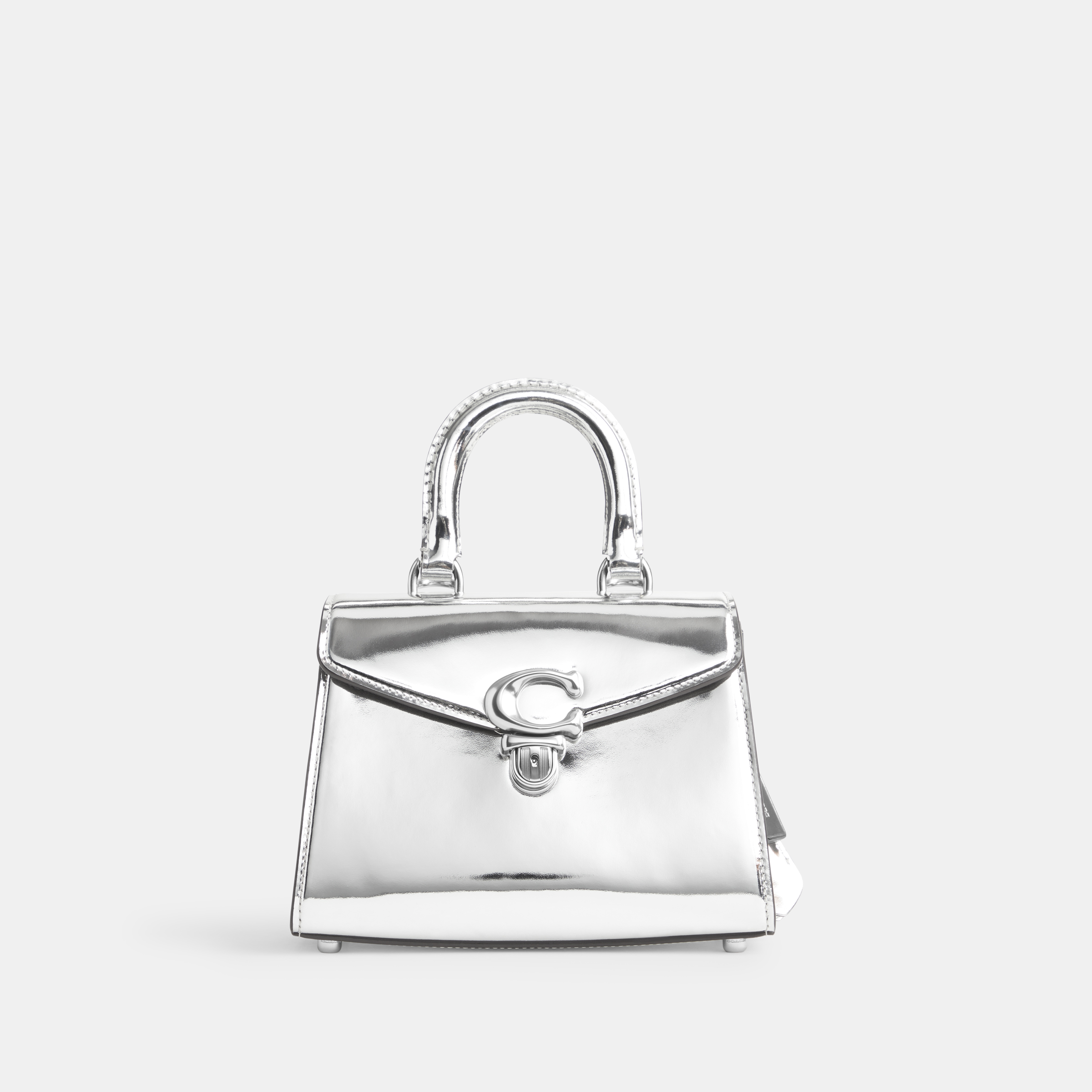This edition of Coach's Sammy 21 bag is crafted from mirror leather for an eye-catching metallic finish. Balancing classic style with contemporary flair, it features a luggage-inspired top handle and a signature C-logo detailed push-lock closure.
