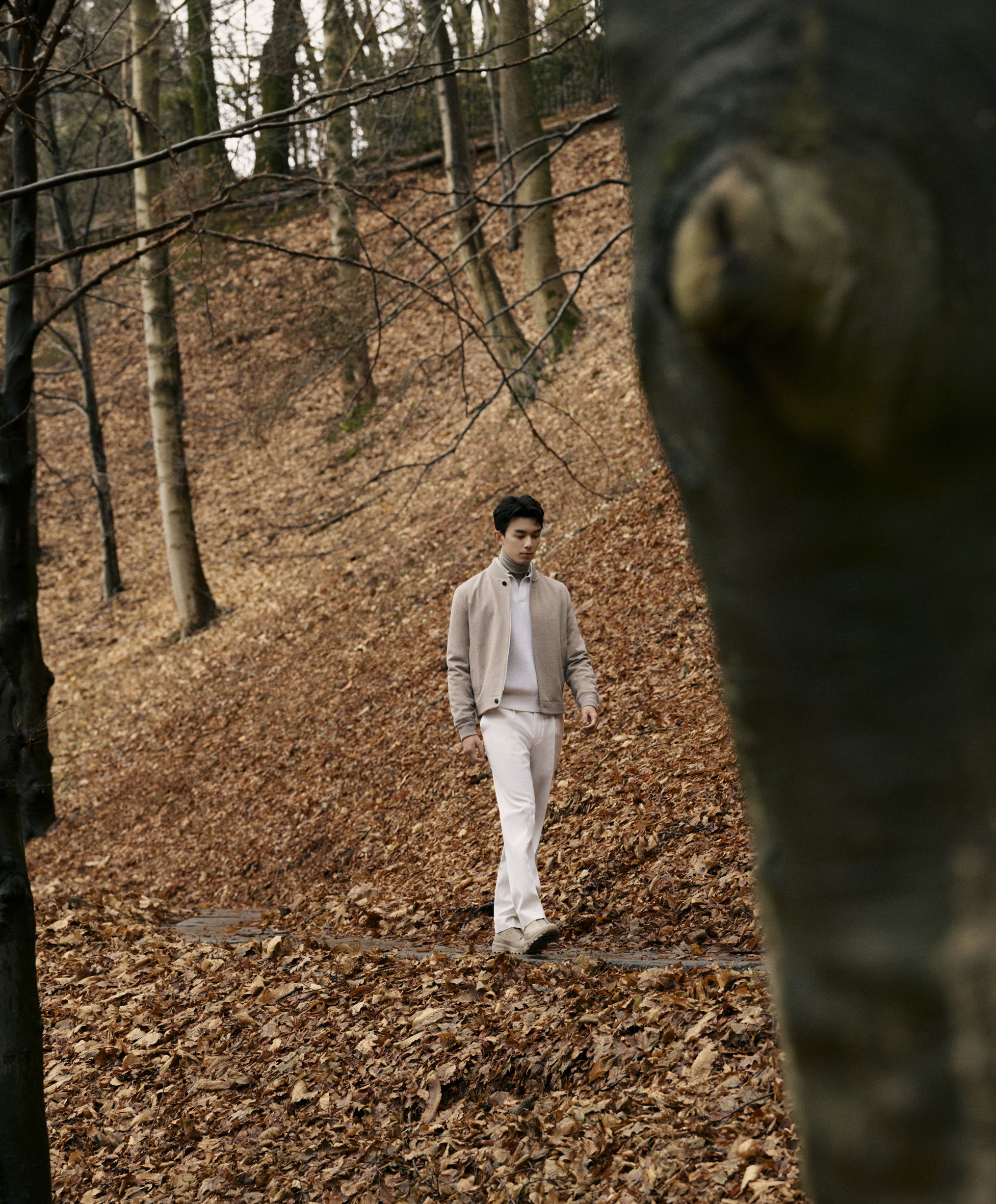 Showcasing the timeless elegance of its designs. The campaign features global ambassadors Mads Mikkelsen and Wu Lei, who reconnect with nature in the serene landscape of Oasi Zegna. This location, central to the brand's identity, reflects the living legacy of founder Ermenegildo Zegna, where the brand's values are not just celebrated but embodied.
