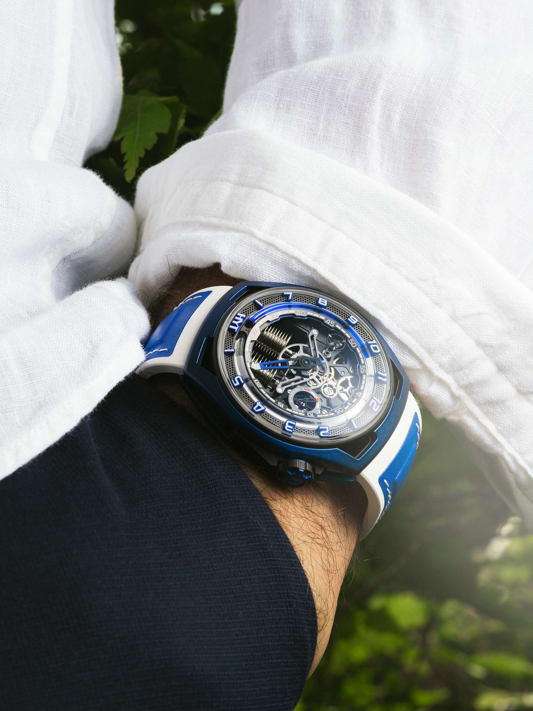 Designed with contemporary elegance and horological mastery, the 41mm timepiece featured a striking blue sunray-patterned dial, a bezel set with 45 baguette-cut blue sapphires, and ZENITH’s signature four-pointed star motif. Powered by the El Primero 3620 movement, it offers a 1/10th of a second display and a robust 60-hour power reserve - all encased in stainless steel with a quick-change system that transitions seamlessly to a blue rubber strap.