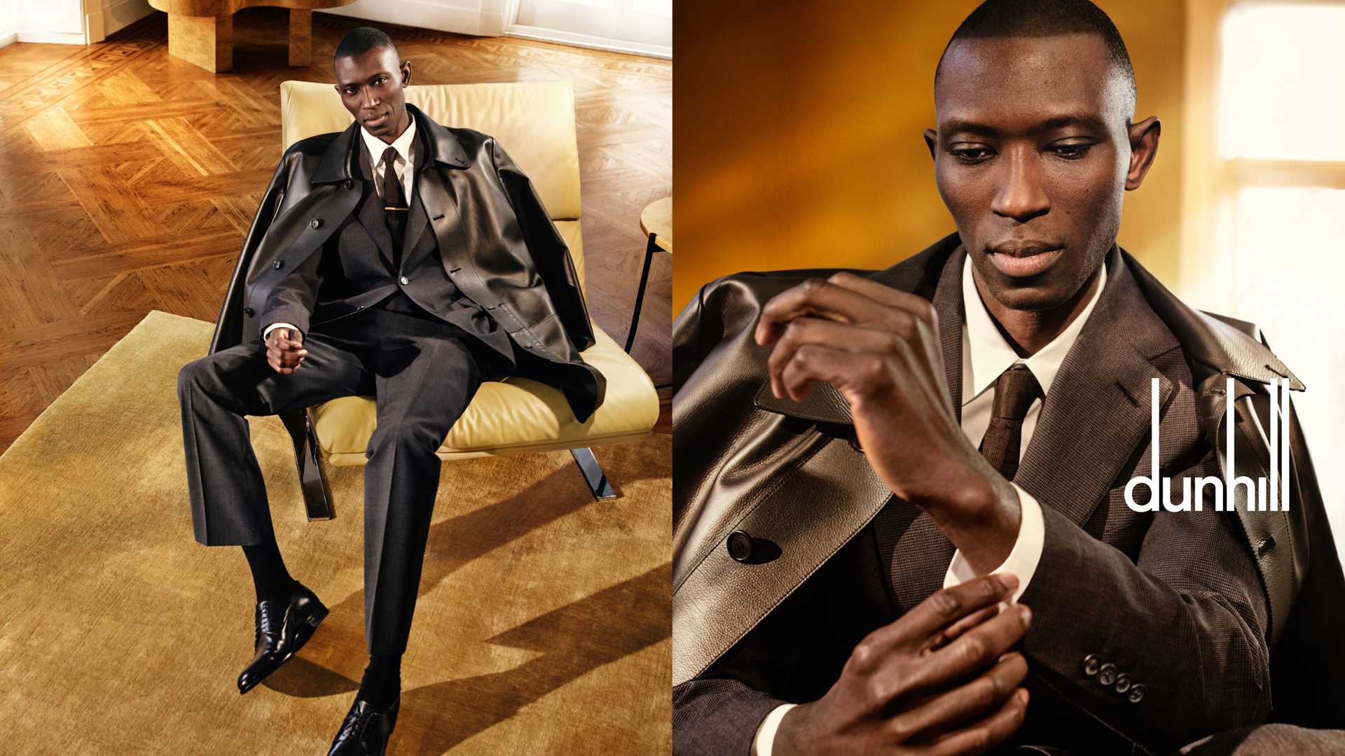 Conceived for city life, dunhill's approach to classicism and contemporaneity is explored throughout the imagery, seen in the revisited approach to formal tailoring. Sophisticated eveningwear and elevated suiting reinforce the exacting standards of the House - uncompromising in fabrication, fit, and functionality. A culmination of 130 years of leather expertise, the versatile 1893 Harness tote heroes this new accesory family, inspired by the bridle-making legacy of founder Alfred Dunhill.