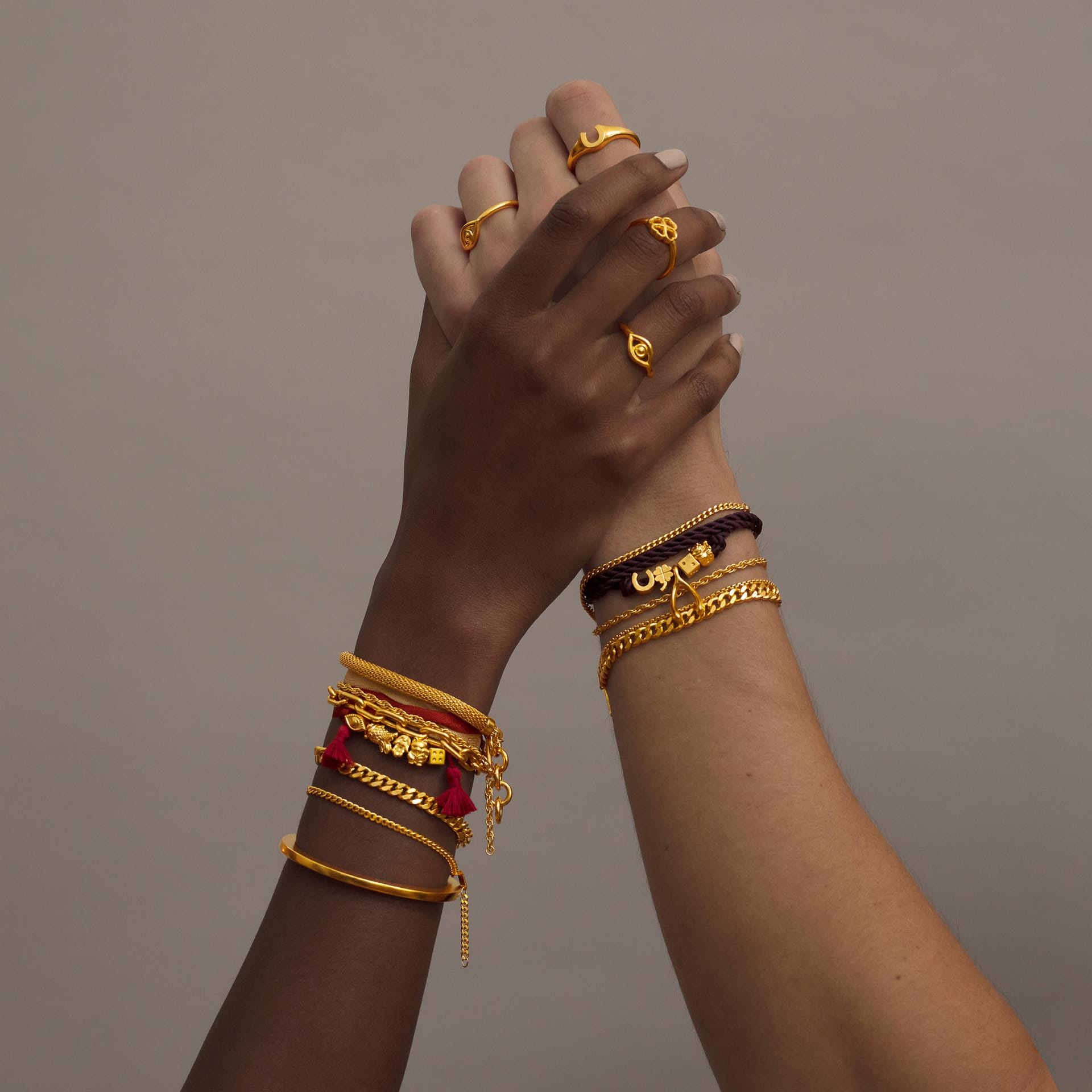 Born in 2018 from the encounter between Diana Picasso, granddaughter of the painter, art historian and curator, and Roy Sebag, founder of the online bank GoldMoney, a financial institution where customers place their assets in gold, the jewelry brand MENĒ imagines collections in 24k gold and platinum for everyone.